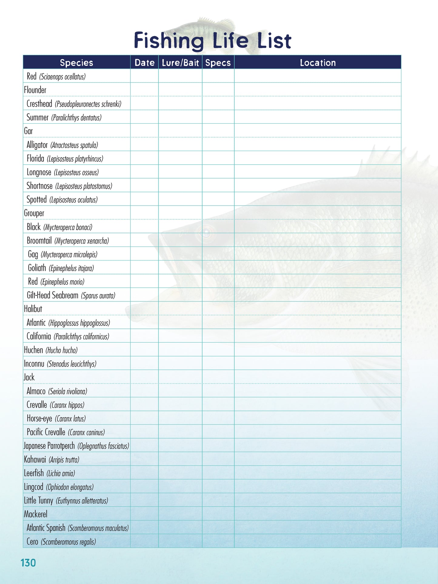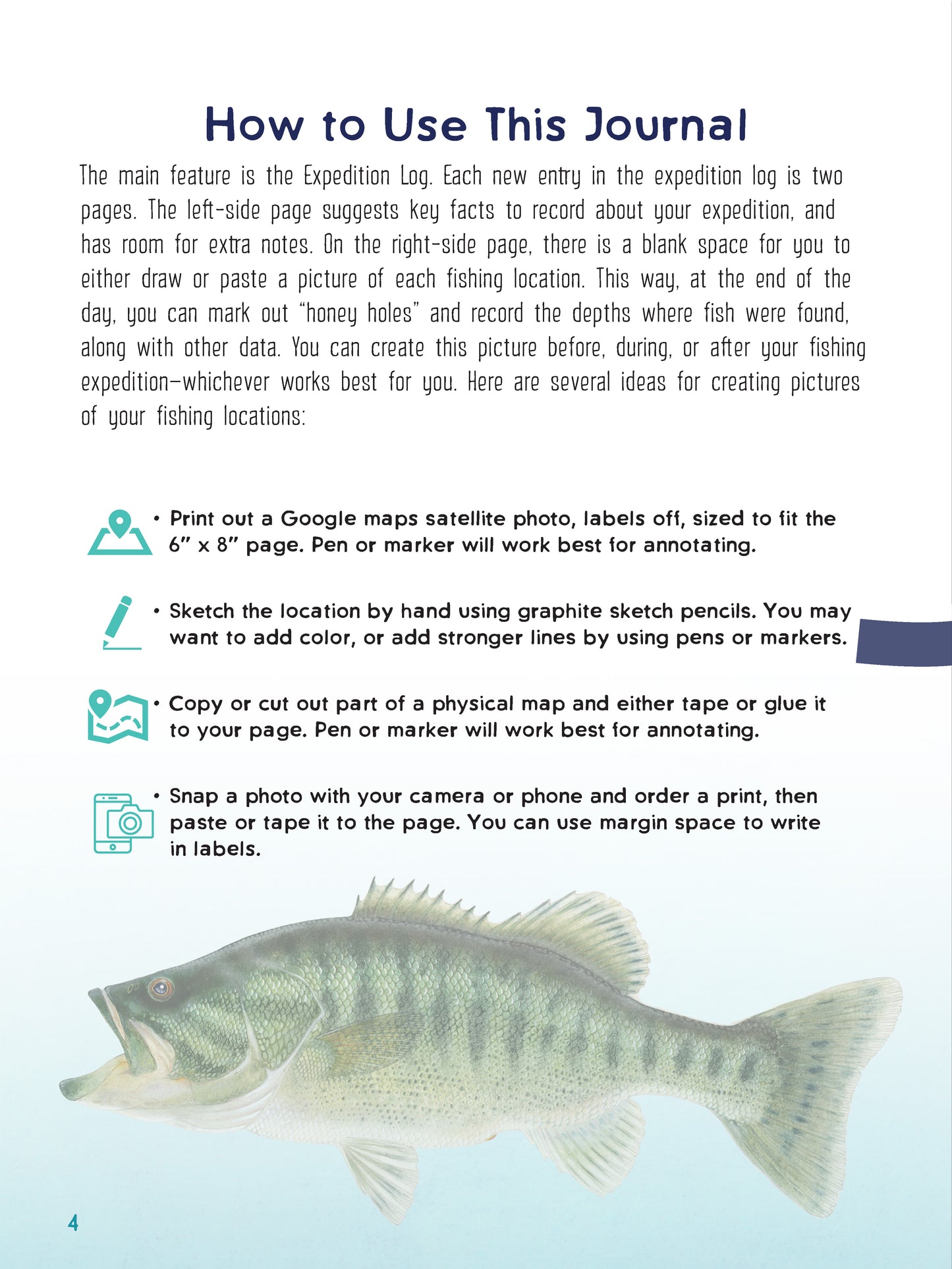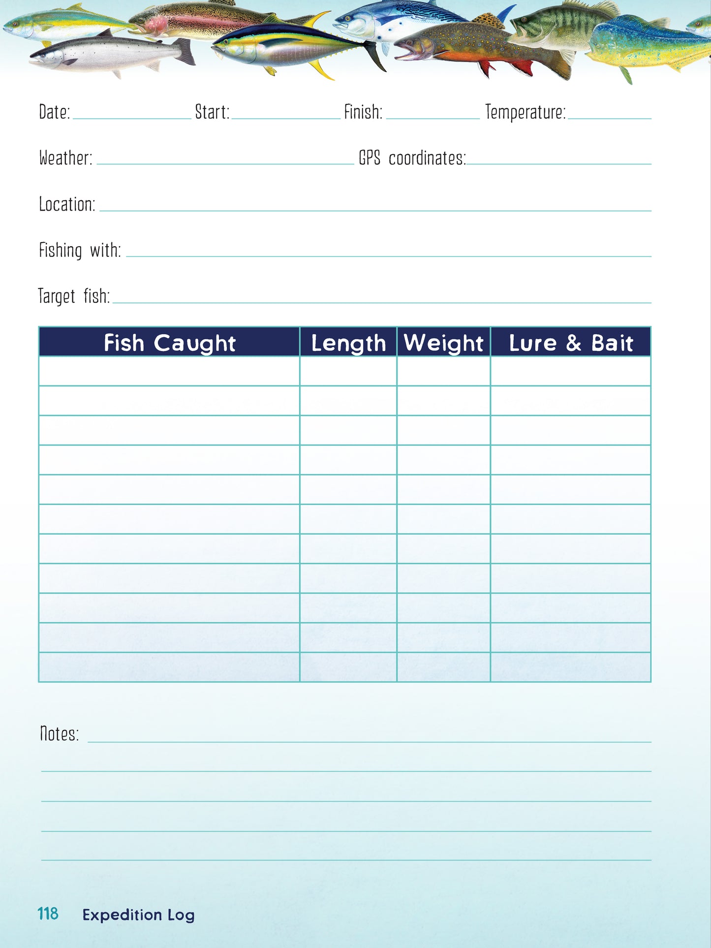 This handy journal keeps track of everything a dedicated fisherman needs to know in one organized place. Record essential fishing trip information for future reference—locations, companions, weather, equipment used, lures used, and fish caught. Use the game fish checklist to log species, time of catch, place, technique, weight, length, and personal best. Keep track of lures, rods, reels, and boat. Sketch the shape of memorable lakes and mark the hot spots. Fishing enthusiasts can archive all of the important information here. With a convenient 6x8 size that fits easily in a tackle box, An Anglers Journal is the perfect gift for the sportsman who has everything. This journal will prove as essential to the angler as a playbook is to a football coach!
