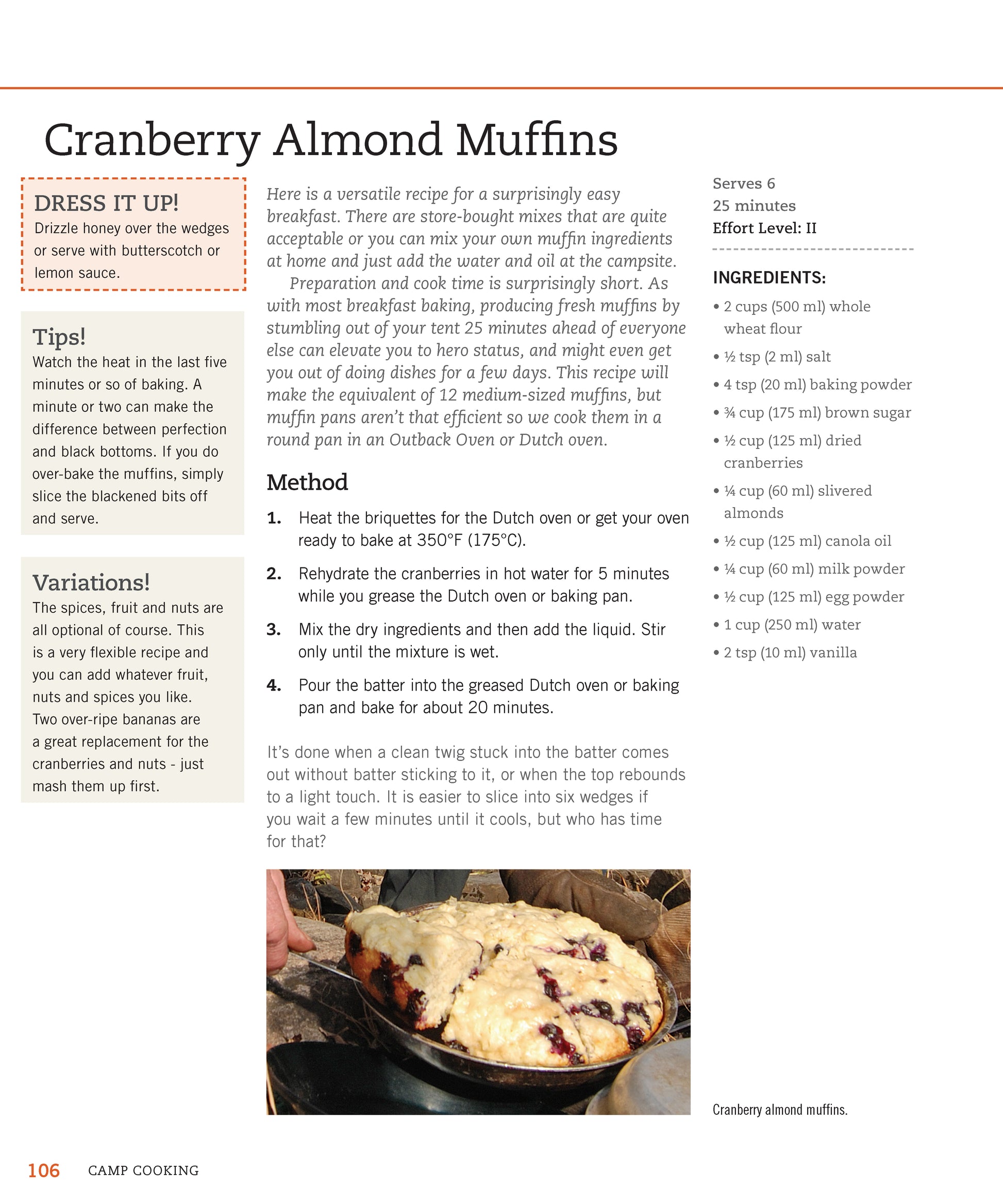 Whether you are a beginner at camp cooking wondering how to create a menu and set up a kitchen in the woods, or a more experienced camper looking for some new techniques and recipe ideas, Camp Cooking can help. Wendy Grater, Mark Scriver of Black Feather Wilderness Adventures and senior guide Joanna Baker have been feeding groups of all sizes, on all kinds of outdoor trips. for well over half a century combined. In Camp Cooking, they share their extensive knowledge, favorite recipes and proven methods so that you too can make your on trip meals successful. Beautiful photographs, clear instructions, expert advice, and a lot of great recipes make this an indispensable guide for anyone who wants to eat well in the wild.