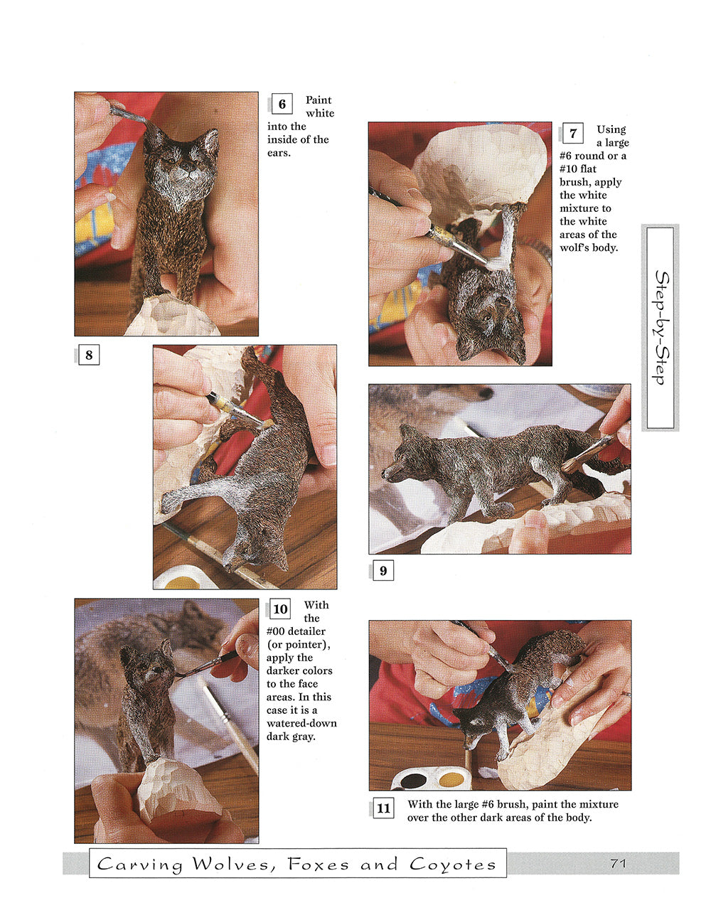 The most complete guide to carving the wild members of the canine family! Your carvings will reach a new level with the book featuring more than 140 step-by-step carving, burning, and paiting photographs, color-coded anatomy sketches, artist notes. reference photos and 12 patterns.