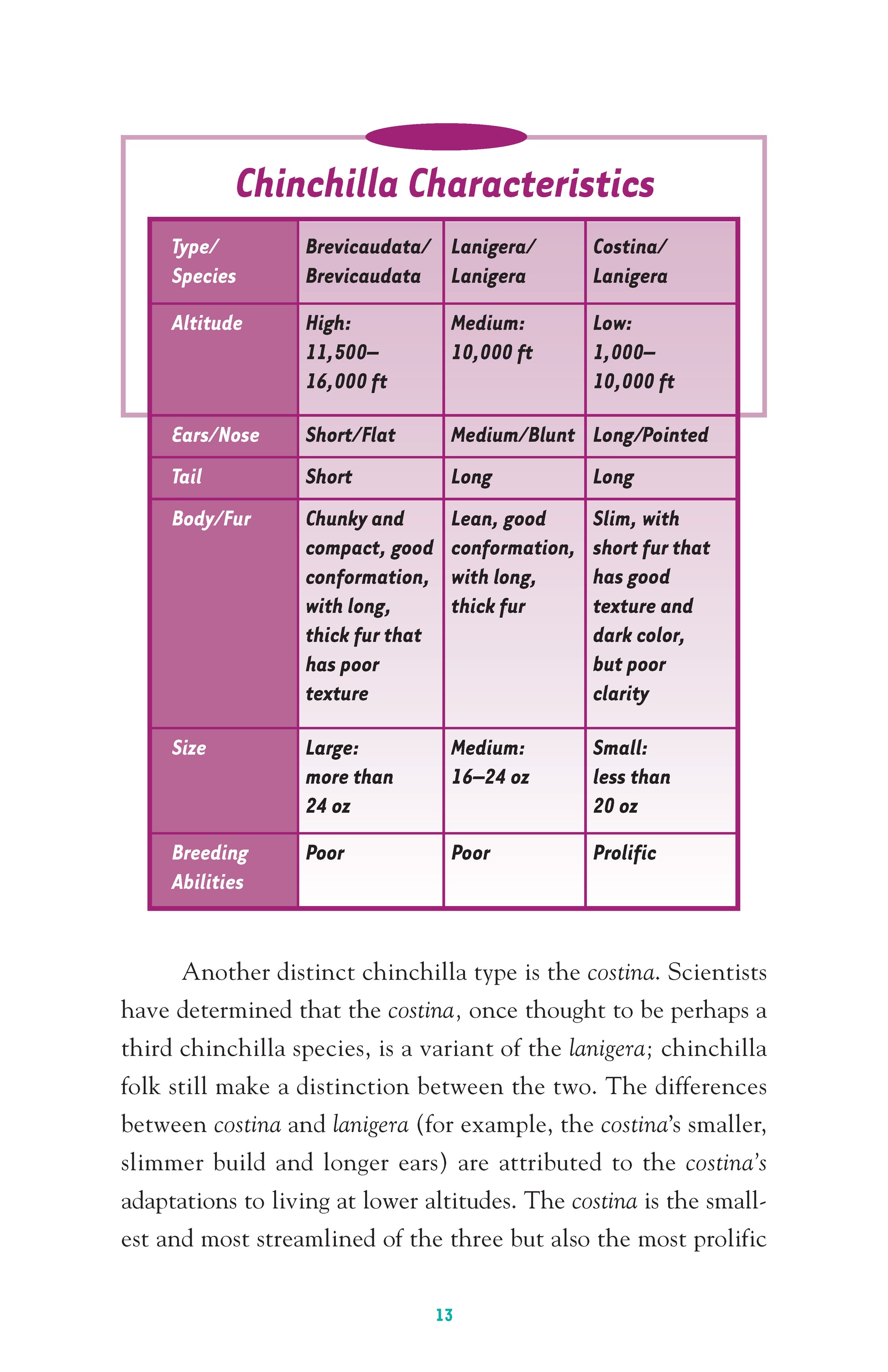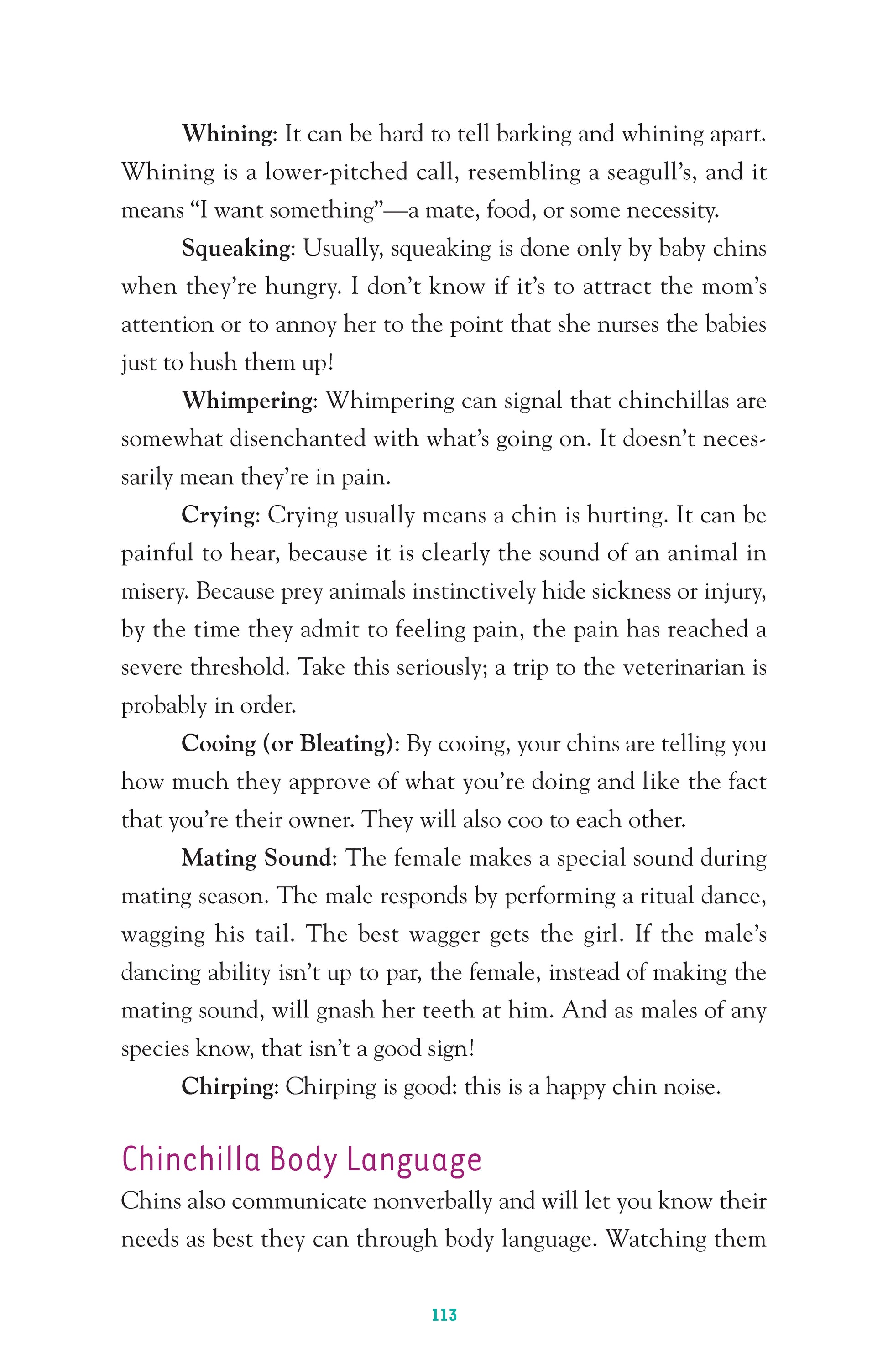 The delightful South American ?unrodent-like rodent” known as the chinchilla makes a playful and affectionate companion animal. Author Donna Anastasi refers to them as ?inquisitive, sensitive, intelligent, and active,” the ideal combination of intelligence and interaction anyone would want in a small pet.This Complete Care Made Easy title is an ideal introductory pet guide about the chinchilla, with detailed chapters on characteristics, selection of a healthy chinchilla, housing and care, welcoming and taming the new arrival, feeding and daily care, training, and health and veterinary care. The book offers excellent advice about feeding and nutrition, including the choice of pellets, supplements, hay, and treats.The chapter ?Understanding and Training Your Chinchilla” explains the abilities and limitations of chinchillas’ senses (they’re nearsighted but have exceptional hearing) and offers a great overview of how they communicate through sounds and body language. With positive reinforcement and a clicker (no leash and collar!), the chin can be trained to perform tricks for the family’s entertainment, and the book gives lots of training pointers for owners! For chin fanciers who are interested in further exploration, the author includes chapters on breeding chinchillas and getting involved in chin shows. Sidebars throughout the text provide useful information to