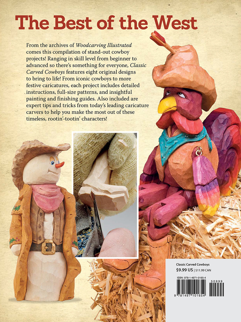 It’s the best of the west! From the archives of Woodcarving Illustrated comes this compilation of stand-out cowboys! Ranging in skill level from beginner to advanced so there’s something for everyone, Classic Carved Cowboys features eight original designs to bring to life! From iconic cowboys to more festive caricatures, each woodcarving project includes step-by-step instructions, coordinating photography, full-size carving patterns, and insightful painting and finishing guides. Also included are expert tips and tricks from today’s leading caricature carvers to help you make the most out of these timeless, rootin’-tootin’ characters!