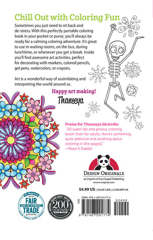 Chill out for coloring fun! Sometimes you just need to sit back and de-stress. With this perfectly portable coloring book in your pocket or purse, you’ll always be ready for a calming coloring adventure. it’s great to use in waiting rooms, on the bus, during lunchtime, or whenever you get a break. Inside you’ll find 28 awesome art activities, perfect for decorating with markers, colored pencils, gel pens, watercolors, or crayons.