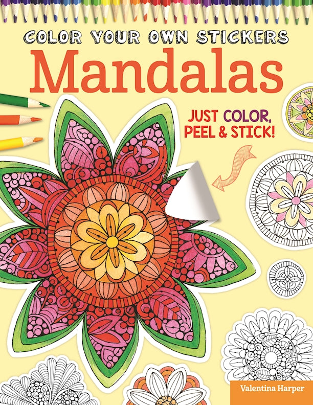 Color your own stickers and personalize your world! Inside you’ll find more than 80 customizable art decals to color, peel, and stick. Create unique mandala stickers to add style and pizzazz to crafts, home décor, notebooks, greeting cards, journals, and more. These intricate mandala designs come in a wide variety of styles, shapes, and sizes. Printed on high quality artist paper, each illustration is perfect for decorating with colored pencils, gel pens, brush markers, or your favorite craft medium. Just peel your pre-cut, self-adhesive decals out of the book and apply to any smooth, dry surface. Color Your Own Stickers: Mandalas includes helpful tips on coloring techniques, along with an inspiring gallery of creative ways to use your finished stickers.