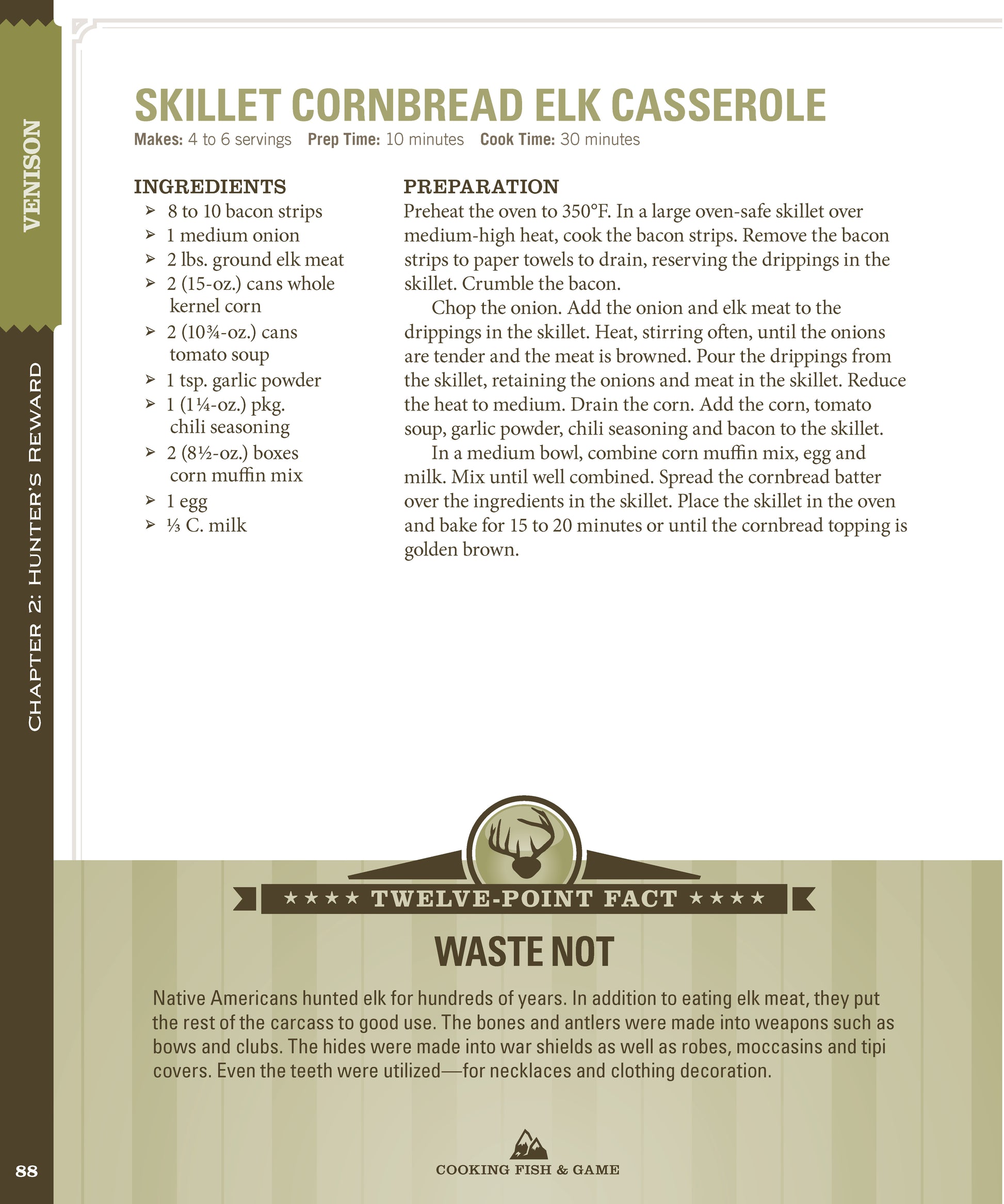 Calling all fishermen, anglers, outdoorsmen, and cooks! Here is a cookbook jam-packed with ways for you to enjoy mouthwatering, wholesome meals, from shore lunches to gourmet dinners, using the fish you've caught and the wild game you've bagged. These are time-tested recipes that provide delicious options for turning a fresh catch into an exquisite meal. There's nothing like the satisfaction of bringing home freshly-caught fish or magnificent, wild game. With the help of this cookbook, that satisfaction will reach everyone who's lucky enough to join you for the meal. Take your fish and game to the next level with: *Venison Steaks with Cranberry Chutney *Spiced Wine Venison Sausage *Elk & Pepper Stir-Fry *Baked Cajun Pheasant Breasts *Grilled Sesame Turkey Breast *Roast Duck with Orange Sauce *Sautéed Bass in Lemon Dill Butter *Crispy Catfish with Homemade Tartar Sauce *Pan-Fried Trout in Pecan Sauce *Grilled Walleye with Fruit Chutney *Bluegill Cream Cheese Bake *Parmesan Baked Pike in Tomato Sauce *And dozens more! Once you try these dishes, you'll be hooked. And once you serve them, everyone will be game for more!