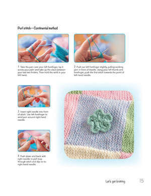 An irresistible collection of utterly cute baby clothes, these patterns will give great delight to the knitter and those who see the results. There are booties that look like little strawberries, a set of bumblebee hat and mitts, and a cozy cot blanket that looks like a field of daisies. Lovely hats, botties, mitts, little coats, and cardigans—none of the patterns are complicated, and many are suitable for beginners. As well as cute clothes, there are accessories for the nursery, including play blocks, a cuddly teddy, and a laundry bag. Created with small babies in mind, many of the projects can also be made to fit babies from 3 to 9 months. All will make adorable gifts for favorite, beloved little ones. Projects include: *Christening bib *Doggie slippers *Edward Bear *Baby blue booties *Teddy hoodie *Nursery Laundry bag *And more! Whether it's for your own baby or a little grandchild, don't hesitate. Get started on these beautiful baby projects for knitters!