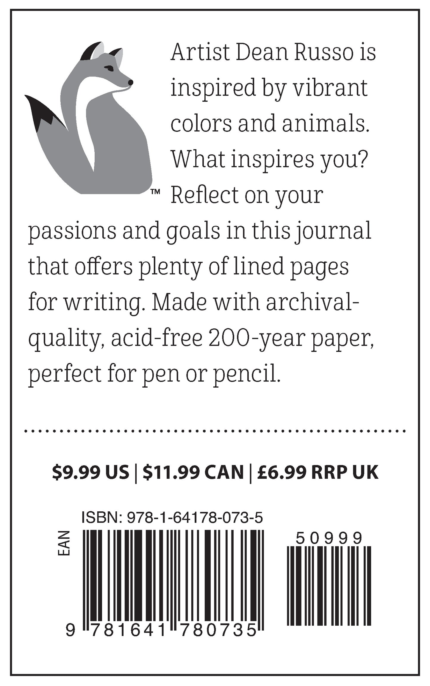 This beautiful hardcover journal features iconic, original rescue dog cover art from Brooklyn-based pop artist Dean Russo. Russo, a popular animal illustrator with a deep affection for the animal world, is instantly recognizable for his vibrant, idiosyncratic style. Russo is renowned for his dedication to animal rescue with charity auctions, donations and fund-raising events. Printed on archival-quality, acid-free 200-year paper with decorative end papers, Dean Russo Rescues Are My Favorite Breed Journal is perfect for reflective writing with pen or pencil. Plentiful lined pages provide space for creative self-expression.