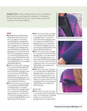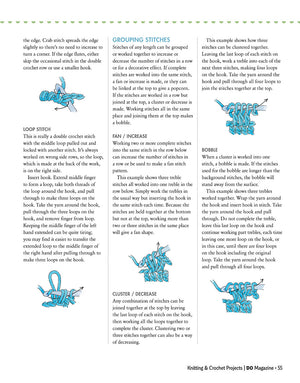 This special issue of DO Magazine features 19 knitting and crochet projects you will want to make and wear! Many are on a beginner level, so they are great starter projects. But even if you are a seasoned needlecrafter, you will find yourself wanting to make some of these classically beautiful pieces. Compiled from the works of some of our favorite contributors, there are sweaters to help you transition to spring, cute accessories, and special occasion pieces to make for a night on the town. If you are new to knitting or crochet, we’ve also included the basic stitches and techniques you’ll need to get started.