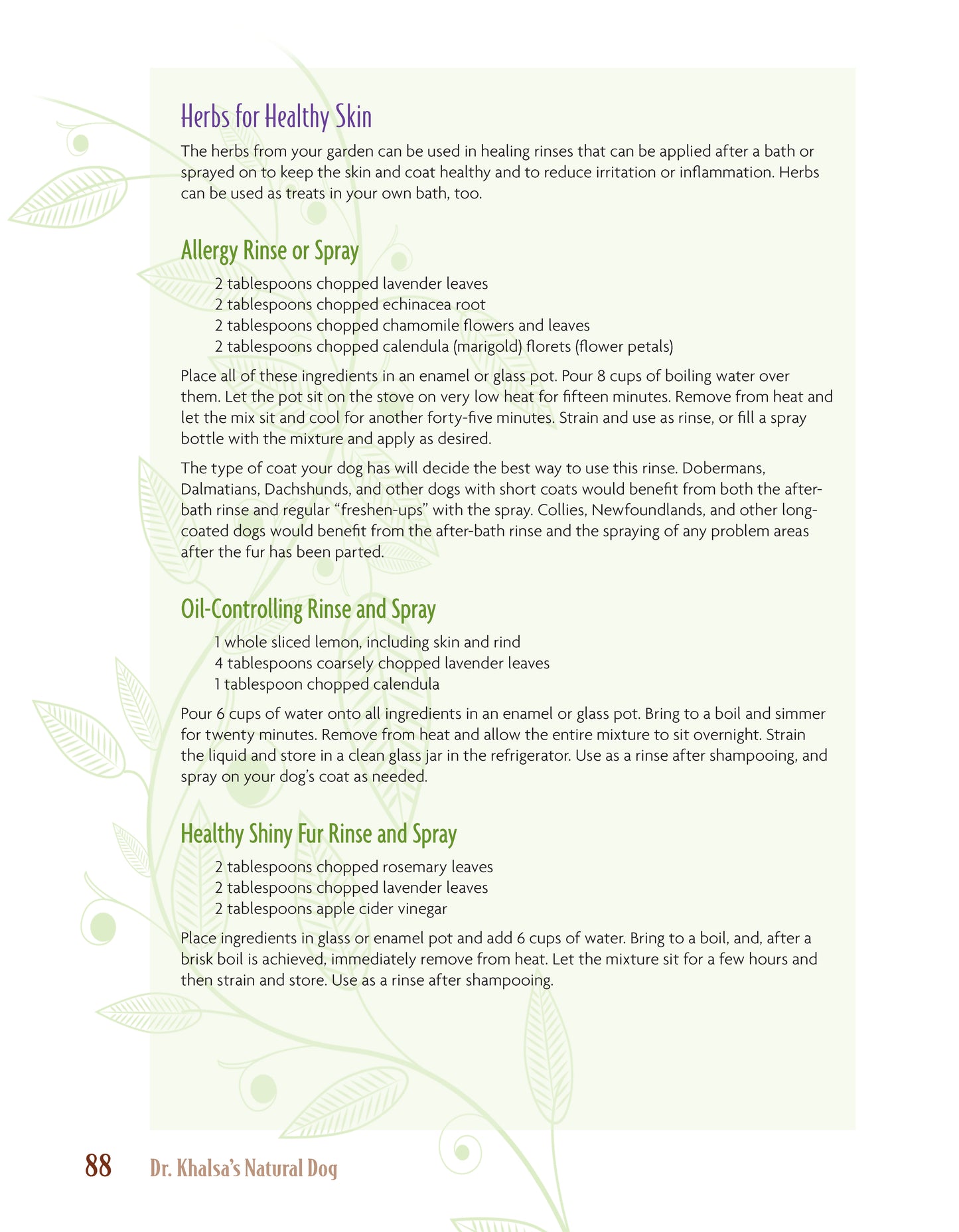 A pioneer in holistic veterinary medicine, Dr. Deva Khalsa shares her effective, integrative approach to natural health and healing for dogs in this invaluable book. Expanded and updated, Dr. Khalsa’s Natural Dog, in its second edition, presents an inspired way for dog owners to design a diet specifically for their dog’s needs, lifestyle, age, and health. Developed over decades of practice and study, Dr. Khalsa’s methods combine traditional veterinary medicine, wholesome nutrition, and holistic therapies, such as alternative methods, herbal remedies, and botanical medicine. In the new edition, Dr. Khalsa will present the latest research on such important issues as avoiding and treating cancer, chronic gastrointestinal problems, allergy elimination, and effective holistic treatments for ten common problems.In the Foreword, Dr. Marty Goldstein, a colleague of the author for over four decades, says that Dr. Khalsa ?knows, feels, and practices healing, patient by patient?[and] this book? ?is nothing more than a mirror of the incredible spiritual energy of a true healer.” By using the simple methods and concepts put forth in Dr. Khalsa’s Natural Dog, dog owners can effect positive, life-changing improvements for their beloved four-legged companions.INSIDE DR. KHALSA’S NATURAL DOGOver 100 original, wholesome recipes, including new grain-free and allergy free