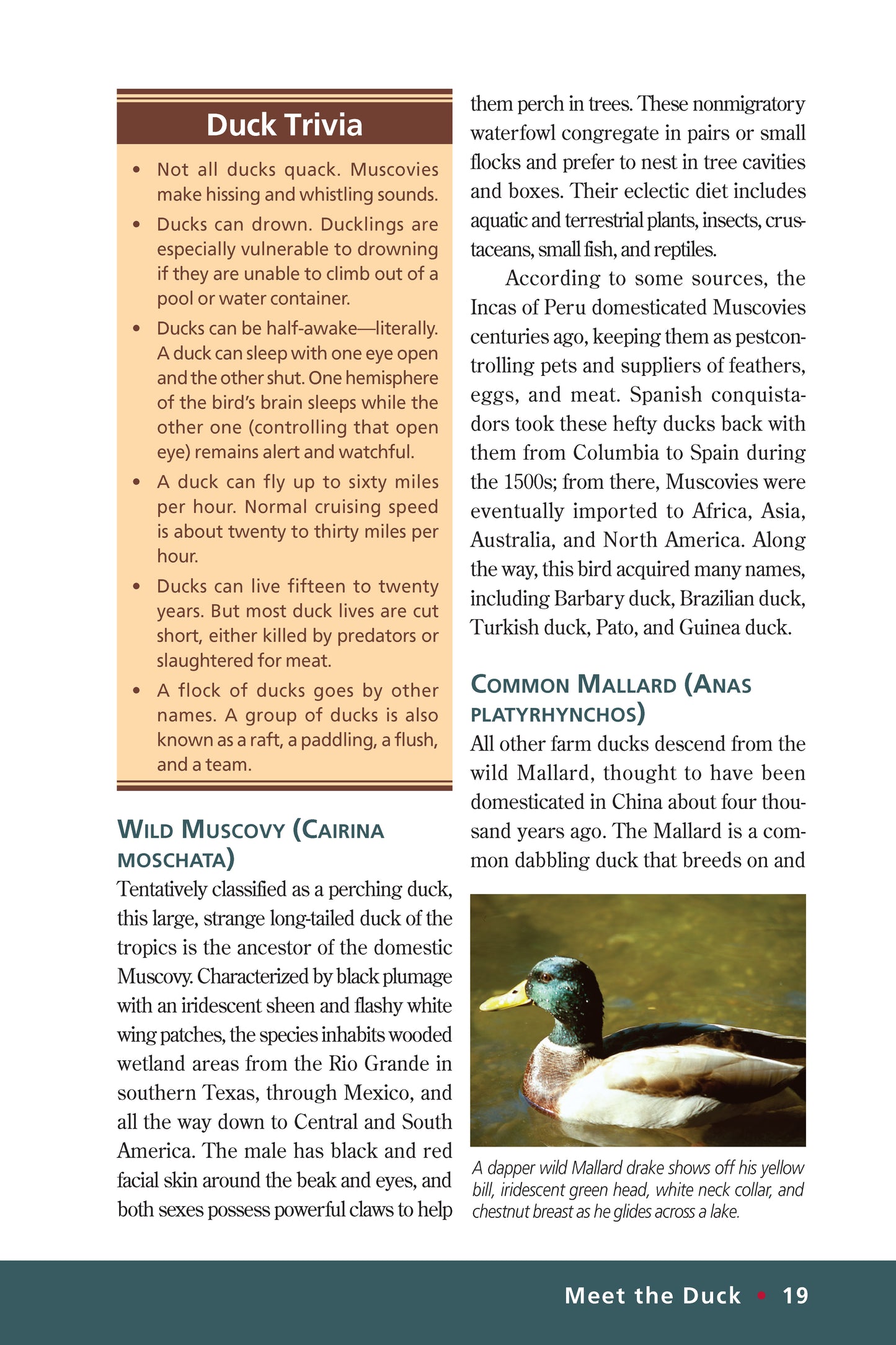 Written by hobby farmer Cherie Langlois from Washington state, Ducks is a fantastic overview of these entertaining and adaptable waterfowl. The author begins by asking ?What do these water-crazy birds have that make them as much an asset to farms as landlubbing poultry?” She provides many answers that defend the virtues and versatility of ducks and argues that the duck is superior to the ubiquitous chicken in many ways. As a zoologist, Langlois has a gift for elucidating the details of the waterfowl’s anatomy, traits and behavior, all revealed in the first chapter ?Meet the Duck.” She proceeds by leading readers through the process of choosing the right ducks for their hobby farm, considering the various domestic breeds (from bantams to heavyweights) as well as the sex of the birds and number of birds/breeds ideal for beginning a hobby-farm flock. The book offers advice on housing these very adaptable birds that thrive in various climates and regions throughout the world: space requirements, ventilation, flooring, feeders, and fencing. Naturally, ducks need water to thrive in the form of an existing lake, a manmade pond or simple duck pools, all discussed in the housing chapter. ?The Duck Diet” chapter discusses the nutritional
