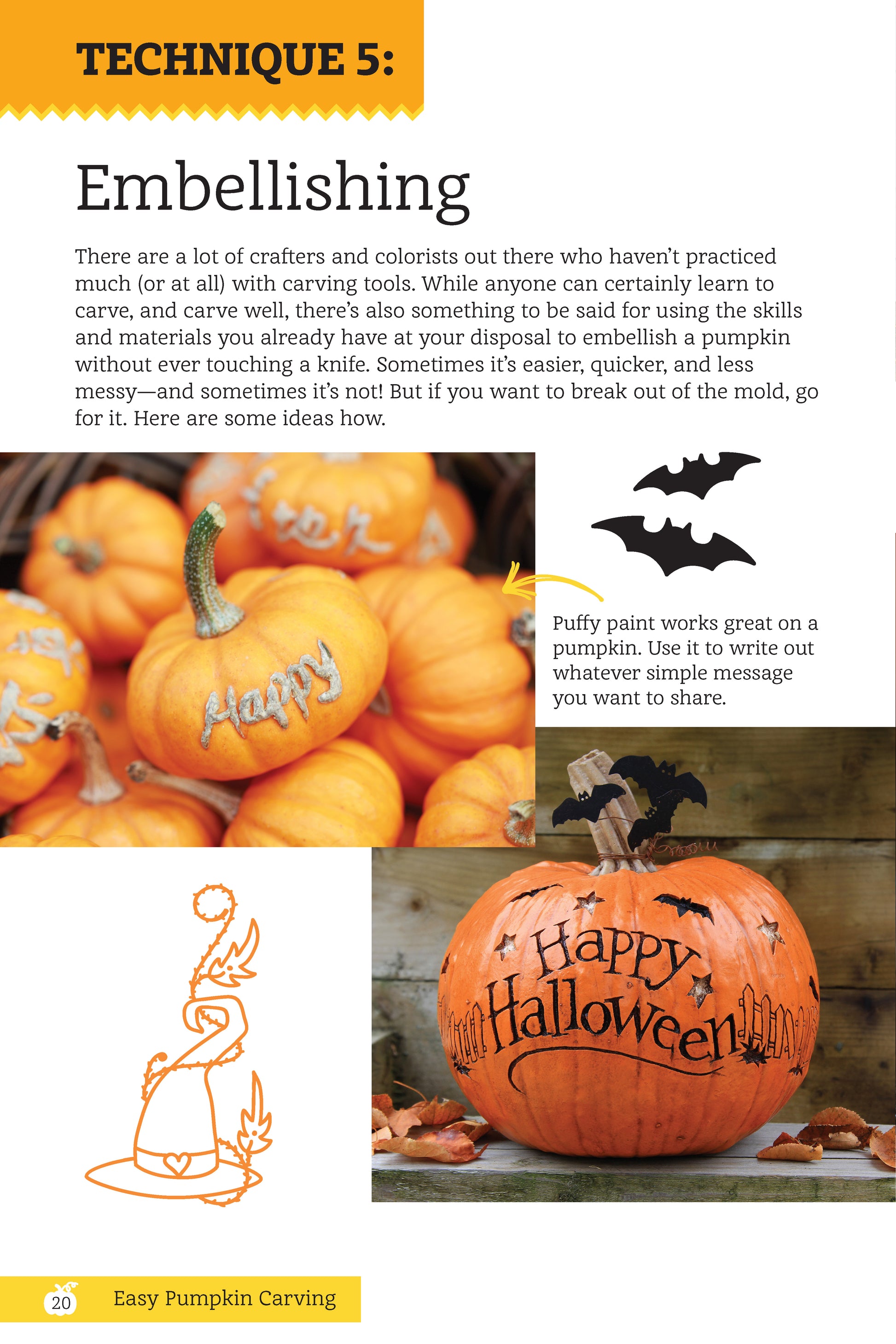 Carve the perfect Halloween masterpiece! Whether you're a first-time pumpkin carver or an experienced pro, create the best jack-o-lantern on the block with this handy guide. Impress those trick-or-treaters with clever, easy-to-carve pumpkin ideas. Easy Pumpkin Carving offers tips and tricks for fang-tastic pumpkin carving with techniques that go way beyond traditional methods. Create luminary pumpkins and etched pumpkins, combine multiple pumpkins in creative ways, or embellish pumpkins without even touching a knife. With inspirational color photos and a dozen ready-to-use pumpkin carving patterns, you're sure to have a spooktacular Halloween with this book.