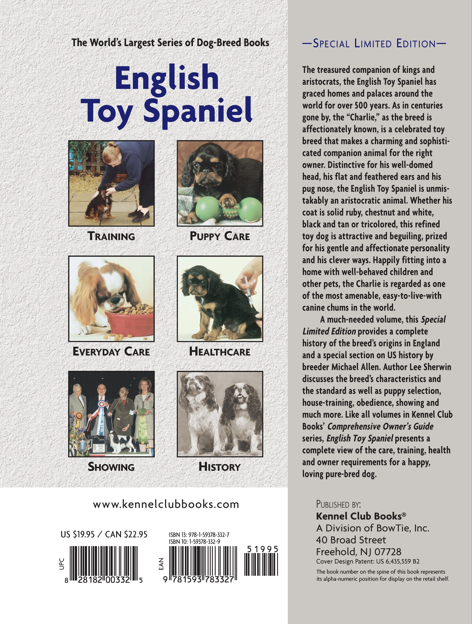 The treasured companion of kings and aristocrats, the English Toy Spaniel has graced homes and palaces around the world for over five hundred years. As in centuries gone-by, the English Toy Spaniel makes a charming and sophisticated companion for the right owner or family. The Charlie, as the breed is affectionately known?in honor of King Charles II, the breed’s most famous ally?is distinctive for his well-domed head, flat and feathered ears, and his pug nose. Owners are spoiled for choice, as the breed comes in four distinct color patterns (solid ruby, chestnut and white, black and tan, or tricolored). This Comprehensive Owner’s Guide opens with a chapter on the breed’s history, retelling the breed’s beginnings in England and featuring a special section on the history of the breed in America, written by breeder and artist, Michael Allen. The chapter on the breed’s characteristics is focused on helping a potential owner decide whether or not the Charlie is the right toy dog to bring into his or her life, considering the breed’s personality and physical traits, health concerns, and special requirements. For most responsible dog owners, the Charlie fits well into a home with well-behaved children and makes an amenable, easy-to-live-with