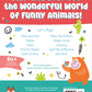The Funny Animals Activity Book is filled with 90 engaging and entertaining games and puzzles for children ages 6-10. Playful illustrations of elephants, giraffes, sloths, monkeys, and foxes are showcased throughout. Games and puzzles include a simplified variation of Sudoku, labyrinths, seek-and-find, mazes, word searches, coloring page activities, spot-the-difference, find the shadow, and learn to draw. Perforated pages for displaying when complete.
