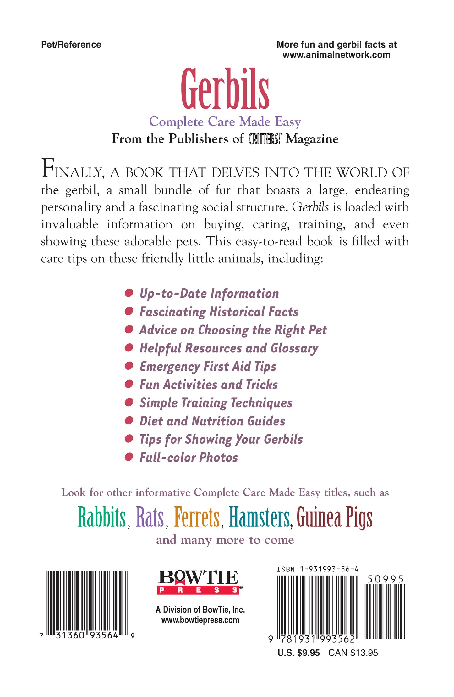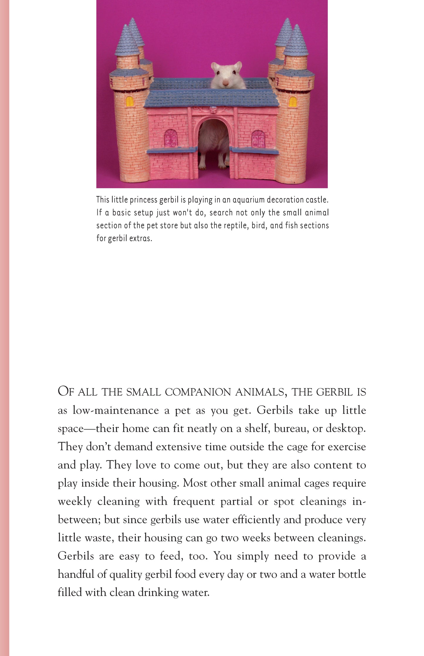Who doesn’t wish to share his or her home with a cage full of ?Furry Mongolian Friends” aka gerbils!? Author Susan Anastasi certain does! She describes these irresistible critters as ?quiet, clean, friendly, curious, active, and easy-to-please.” In deciding whether the gerbil is for you, Anastasi offers this advice: ?If you are looking for a seemingly limitless cache of cuteness?from their long, fanning whiskers and large almond-shaped eyes to heir bunnylike hind legs and tufted tail tips?then gerbils are for you!” Clearly bitten by the gerbil bug, the author begins by providing some basic natural history about gerbils, their origins on the Mongolian range, and an overview of their behaviors. Anastasi defends her favorite pocket pet and asserts that the gentle gerbil does not deserve its Latin name (Meriones ungiculatus), which translates as ?clawed warrior.” Filled with terrific color photographs, Gerbils summarizes the basic needs of these adorable rodents, specifically addressing their housing requirements, the cost and commitment involved, and their interactions with children and other pets. The following are devoted to purchasing a healthy gerbil from a pet shop, hobby breeder, or shelter; introducing the gerbil to the home; housing and feeding; taming and handling the pet gerbil; health