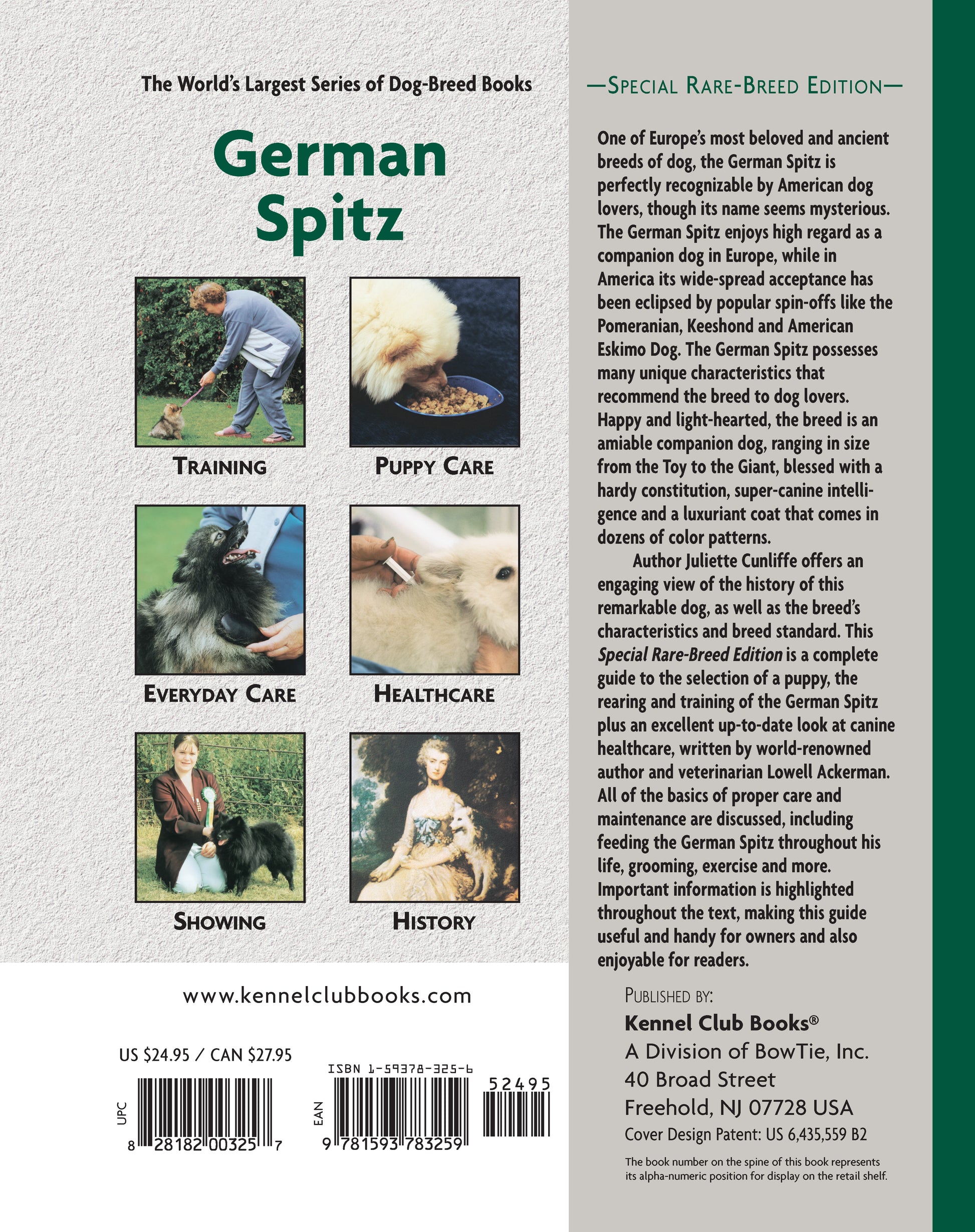 A rare breed in America, the German Spitz is one of Europe’s most beloved companion breeds whose popularity in the States has been eclipsed by three spinoffs?the Pomeranian, Keeshond, and American Eskimo Dog. Like those three smiling descendants, the German Spitz is a happy-go-lucky, lighthearted companion, ranging in size from Toy (7 inches) to Giant (18 inches), and occurring in all colors and patterns. Owners prize the breed for its fun personality, keen intelligence, and hardy constitution. The opening chapter of this Comprehensive Owner’s Guide is dedicated to the history of this breed, tracing its origins from the Peat Dogs of the Stone Age to its rise to favor in Victorian England to its spread throughout Europe and modern-day England. The chapter on the breed’s characteristics paints a portrait of this affable, attractive dog, ideal for a family with children, that requires very little of its owners other than grooming, exercise, and lots of love. This full-color edition, written by British dog expert Juliette Cunliffe, is the only book currently available on this terrific companion breed.New owners will welcome the well-prepared chapter on finding a reputable breeder and selecting a healthy, sound puppy. Chapters on puppy-proofing the home and yard,