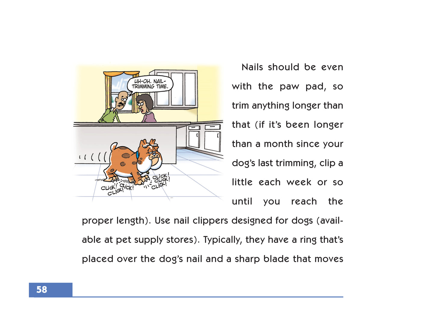 A Simple Solutions guide with lots of practical care tips, Grooming discusses everything a dog owner needs to know to care for his dog’s coat. Whether you own a dog with long, luxurious hair that requires a special care or a simple smooth-coated dog, this little book offers useful advice presented in an entertaining manner that no dog lover can resist. The book offers advice on selecting grooming tools, dealing with shedding, and daily once-overs. With entertaining cartoon illustrations by Buck Jones, Grooming will make readers smile as they learn how to bathe their dog, brush teeth, care for ears, toes, and more!