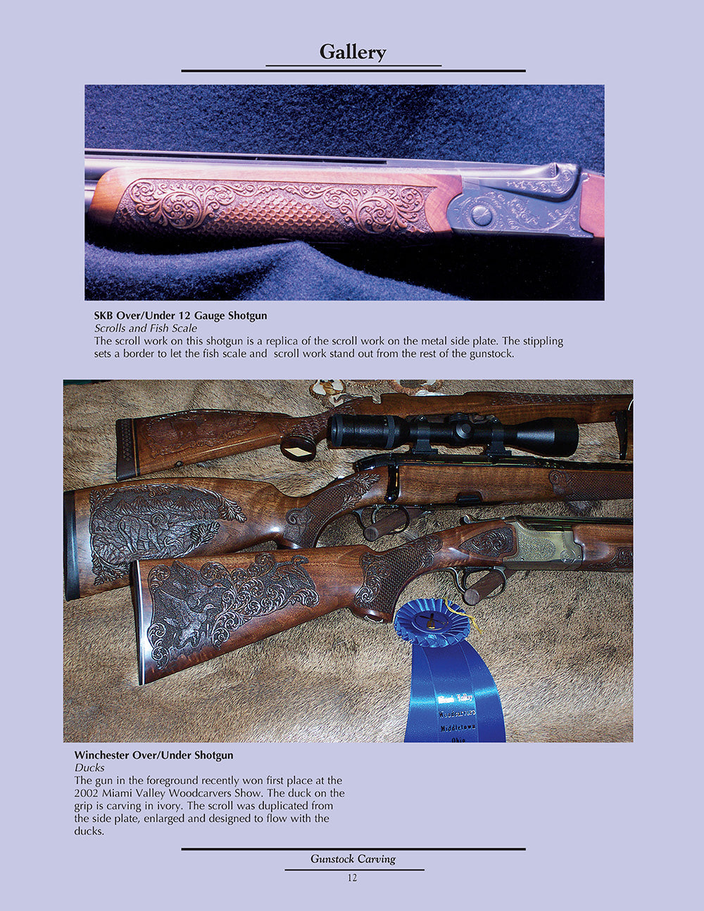 A retired electrician, Bill Janney has a full-time gunstock carving business. His work has been displayed at the SHOT (Shooting, Hunting, Outdoor Trade) Show held in Dallas, Texas, the Ward World Championship Carving Competition in Ocean City, Maryland, and featured in Chip Chats and Rifle magazines. Bill has also produced videos and appeared on a PBS-TV program called American Woodshop. A blue-ribbon winner and Paragrave's Master Carver, Bill teaches carving around the United States. He lives in Middletown, Ohio. A schedule of his classes and other information is on his website, www.BillJanney.com