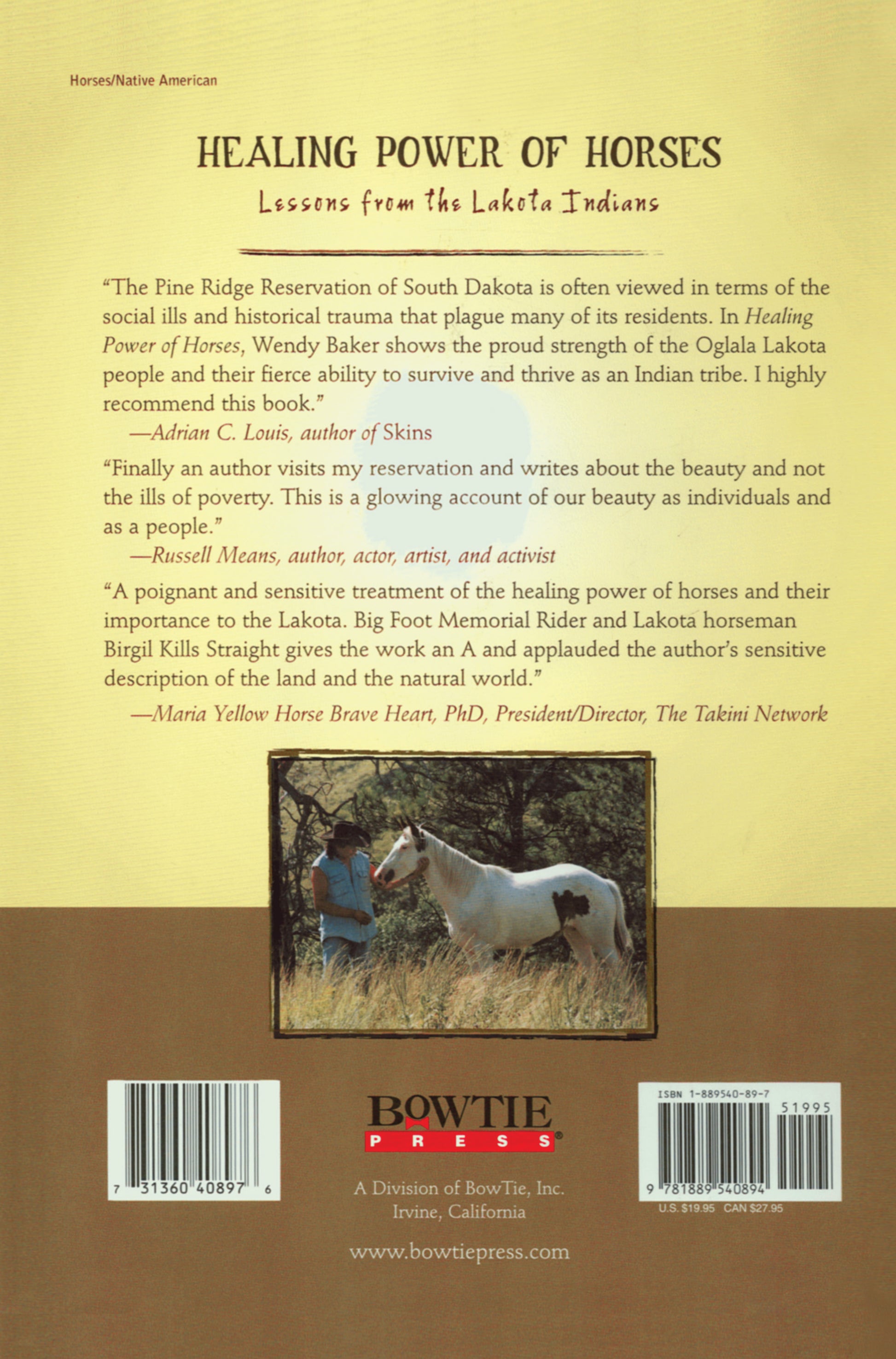 Wendy Beth Baker’s The Healing Power of Horses is devoted to the world’s greatest horsepeople, the Oglala Lakota Indians of Pine Ridge, South Dakota. She begins the book by sharing the philosophy of these great horse-loving people: ?There are those who feel the sun rises and sets on the back of a horse, and no matter what obstacles life sets in their way, they never dismount.” The spirit and fortitude of the Lakota Indians inform Baker’s words as she describes how this once-nomadic tribe came to view the horse as sacred and assigned it great significance in their culture, religion, and lifestyle. The Indians who live on the Pine Ridge Reservation have grown spiritually and as a community through their relationship with their horses, and it is through this connection to the natural world that the power of healing and ultimately, health, flows.With photography by Hope Vinitsky, The Healing Power of Horses tells the individual stories of over a dozen Lakota Indians and how horses have affected each of their lives. Baker was able to interview each of these inspiring individuals for inclusion in this book. The empowering stories told come from Wayne Waters, Marlin ?Moon” Weston, Eugenio White Hawk,