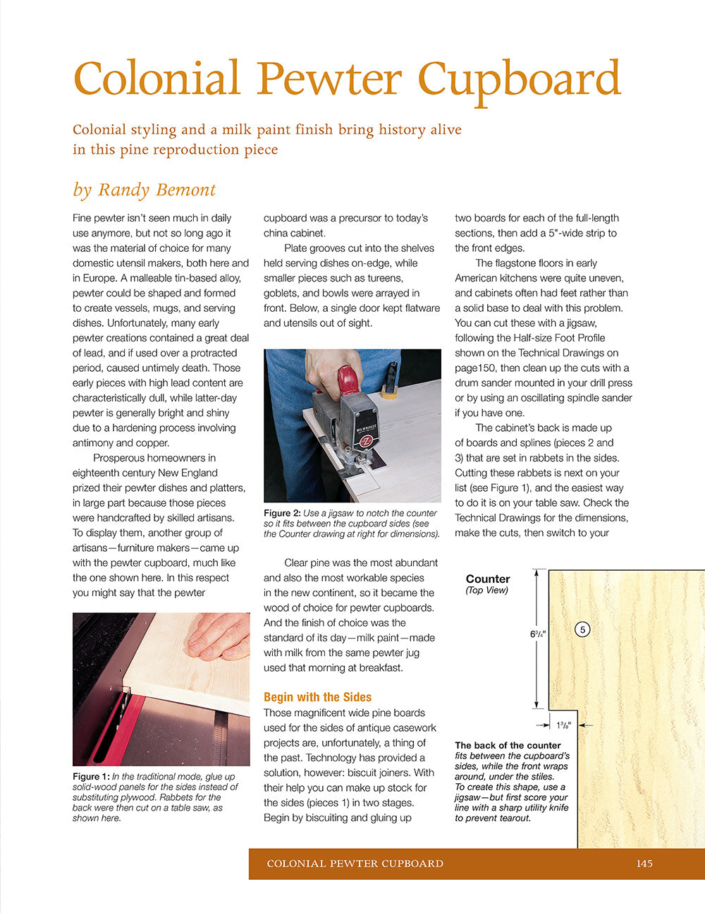 Build a handsome heirloom to be cherished for years to come with 21 projects hand-picked from the editors of Woodworker's Journal. Perfect for adding your carved and scrolled signature touches, the projects include a baker's shelf, Shaker vanity mirror, cherry gun cabinet, Colonial pewter cupboard, and much more.