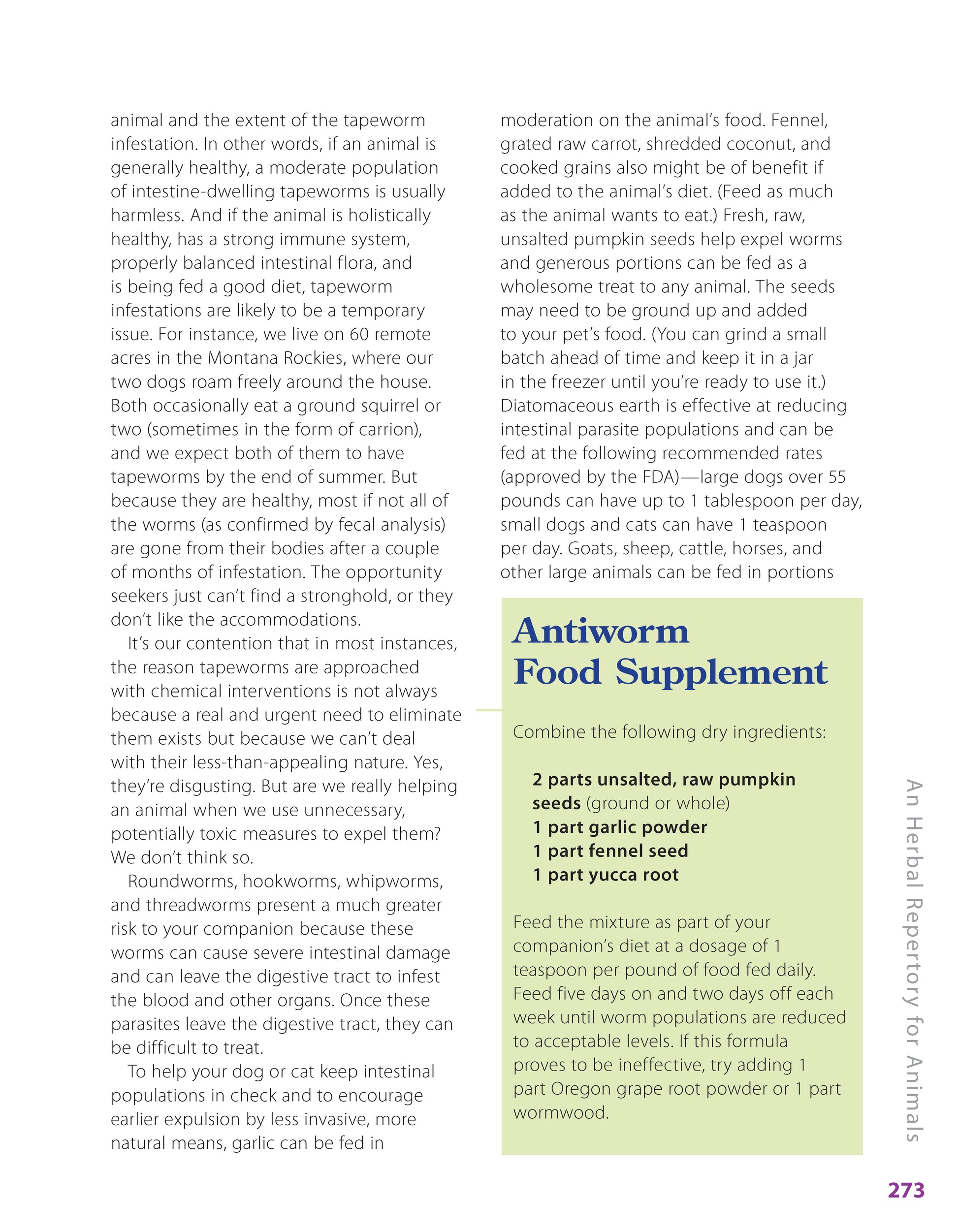 Herbs for Pets, by herbalists and holistic experts Gregory L. Tilford and Mary L. Wulff, is the bible for all pet owners looking to enhance their companion animals’ lives through natural therapies. Now in its second revised edition, Herbs for Pets is an indispensable resource, an exhaustive compendium of medicinal plants and natural remedies that hosts an illustrated tour through Western, ayurvedic, and Chinese herbs that grow in North America, including their holistic applications and contraindications, and alternative approaches to treating a wide range of ailments. Remedies in the book are applicable to dogs and cats, as well as birds, small mammals, and even farm animals.The book is organized into three chapters, the first is dedicated to the ?Principles and Practices of Herbalism,” discussing the many facets of herbs, concerns about toxicity, basic herbal preparation, the ethical use of herbs, the connection between herbs and diet, and using herbs as dietary supplements. Chapter 2, titled ?Materia Medica: An A-Z Guide to Herbs for Animals,” is an exhaustive 150-page section presenting color photographs and text about the appearance, habitat and range, cycle and bloom season, parts used, primary medicinal activities, strongest affinities, common uses, availability, propagation and harvest, alternatives and adjuncts,