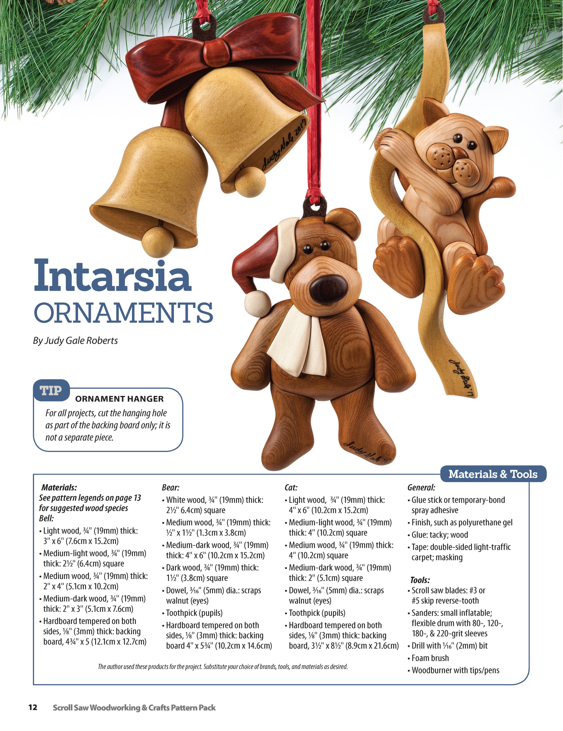 Buy this special holiday pattern collection for just $9.99, or get it FREE with your two-year subscription renewal of Scroll Saw Woodworking & Crafts! Inside you’ll find 14 all-new Christmas ornament and holiday scrolling ideas. Leading contributors to the magazine—including Judy Gale Roberts, John A. Nelson, Judy Peterson, Sue Mey, and Paul Meisel—provide projects for fretwork, intarsia, compound-cutting, segmentation, and general scrolling. Appropriate for all skill levels, each of their designs features full-size patterns, lists of tools and materials, and color photographs of finished projects. Make memorable holiday gifts and treasures like ornaments, home decor, puzzles, candleholders, centerpieces, and more. Visit ScrollSawer.com to learn more about the must-have magazine for scroll saw enthusiasts.
