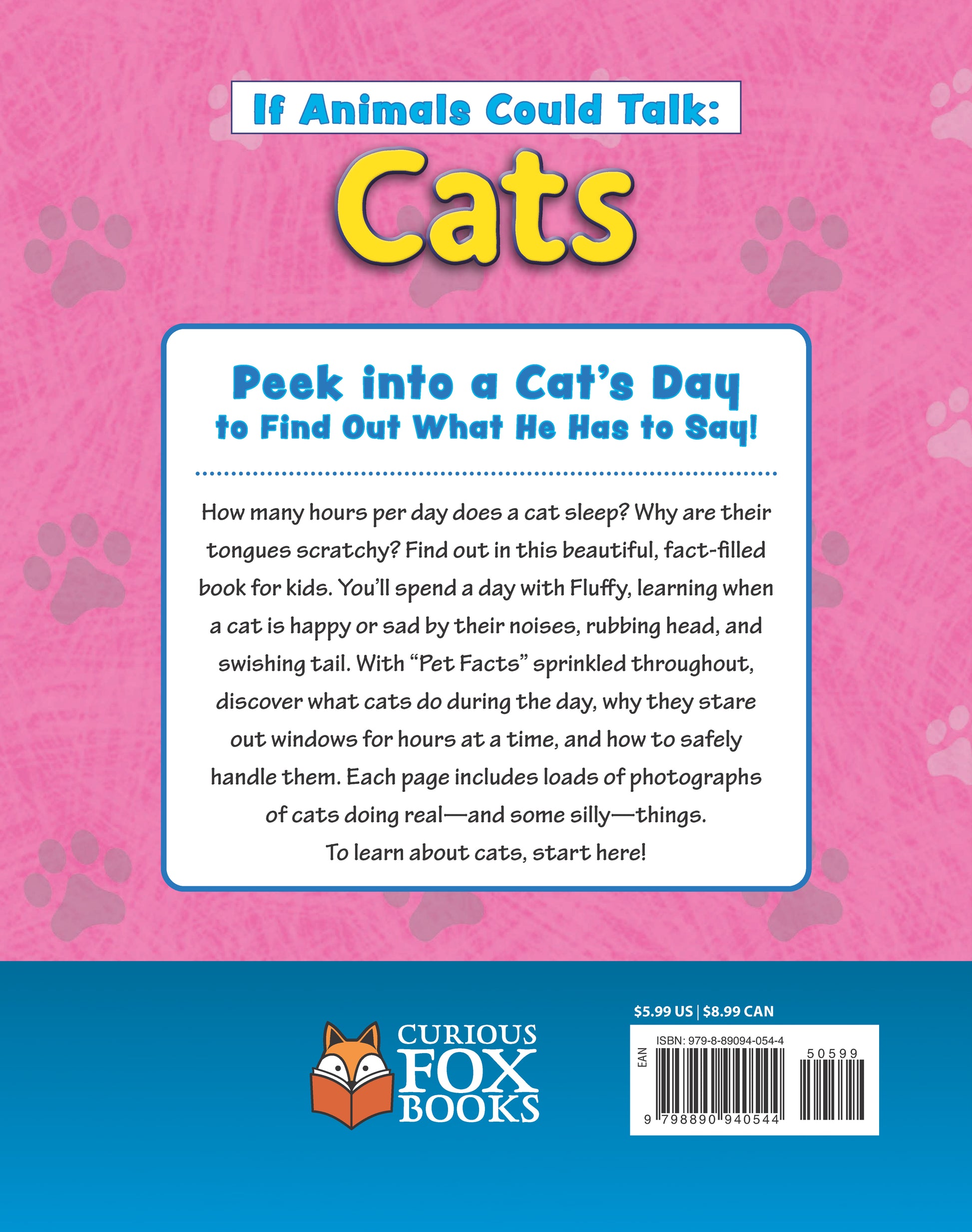An excellent book for young learners! If Animals Could Talk: Cats is told as a first-person non-fiction narrative that explains what cat sounds mean--such as a purr means a cat is happy--and helps kids understand why cats act the way they do in a fun and dynamic way. With full-color photos of real cats, it also includes interesting Pet Facts and suggested readings for more information about understanding cats.