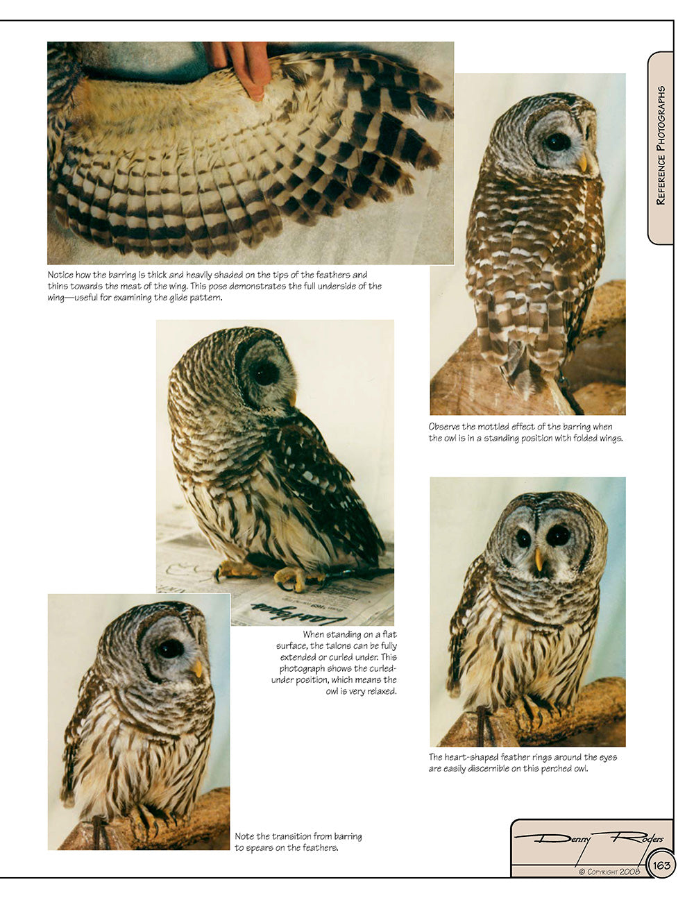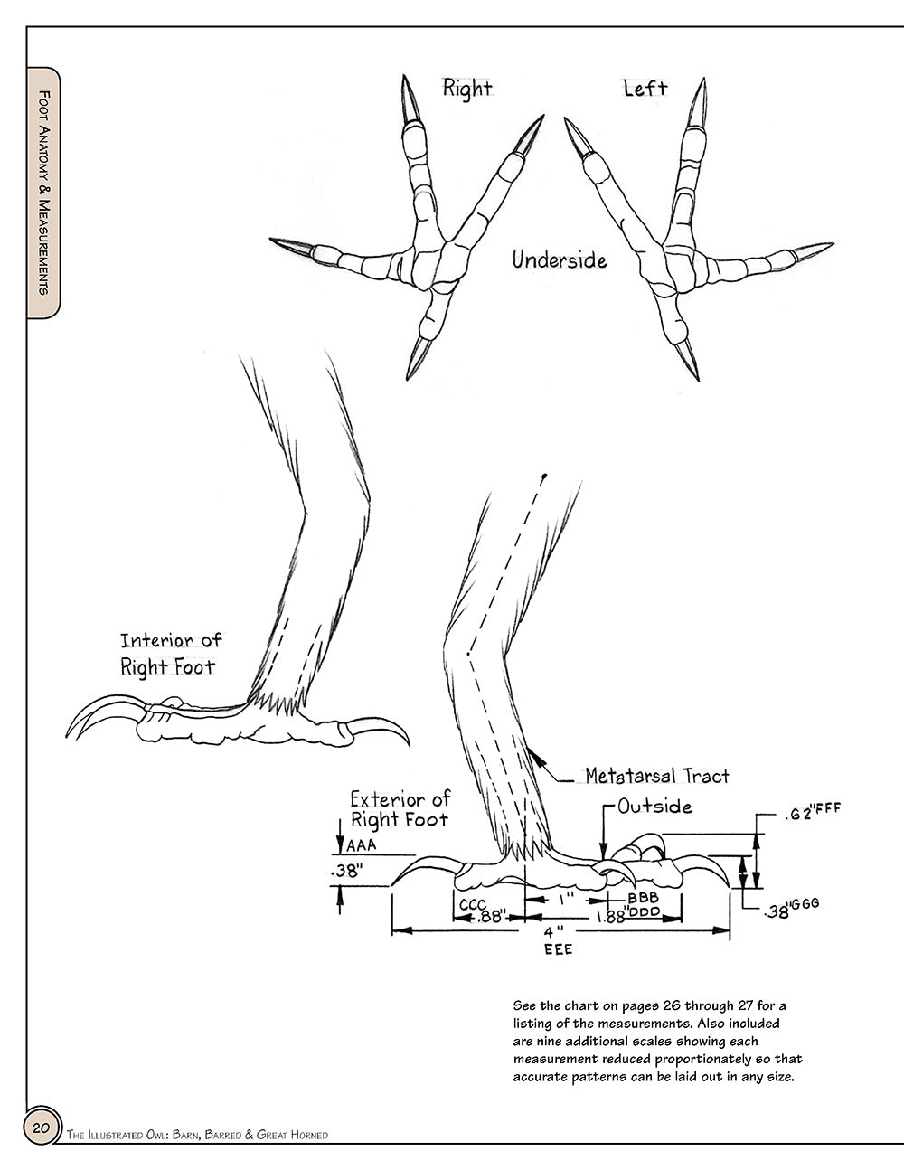A visual study with exact drawings in multiple dimensions for the Great Horned Owl, Barn Owl and Barred Owl. Paint patterns included.