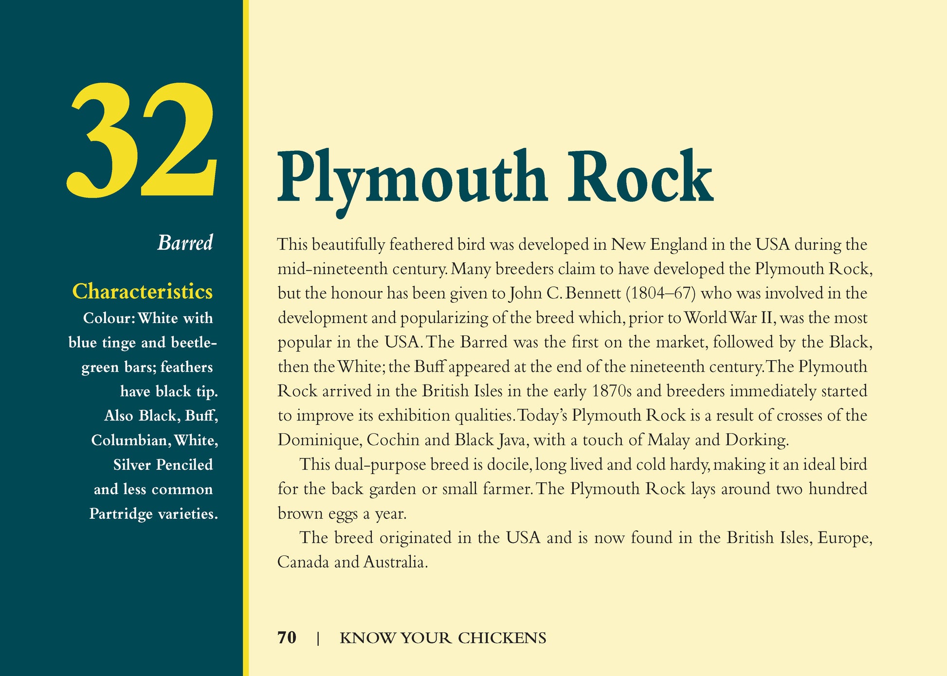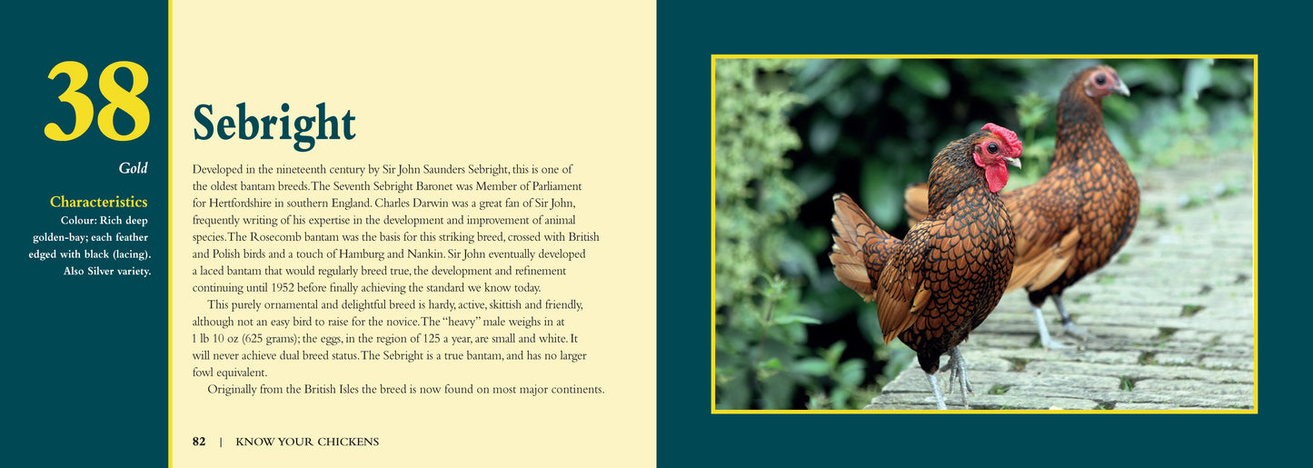 Did you know that Barnvelder chickens are known for being lazy while Belgian D’Uccle chickens are known for being friendly? Impress friends and relatives with interesting facts about more than 40 breeds of chickens from around the world, including their history, personality, egg-laying and flying abilities, and other fun facts. From knowing what chickens are considered the “French Poodles of the world” to which ones can fly the highest, learn all about these diverse – and sometimes rare – animals with this fascinating guide and Know Your Chickens! • Features over 40 popular breeds of chickens, each receiving its own full-page spread • Provides fun facts highlighting their characteristics, history, personality, capabilities, and more • Includes distinctive, high-quality photography of each breed • Its compact size makes it fun and easy to flip through for fast and interesting info.