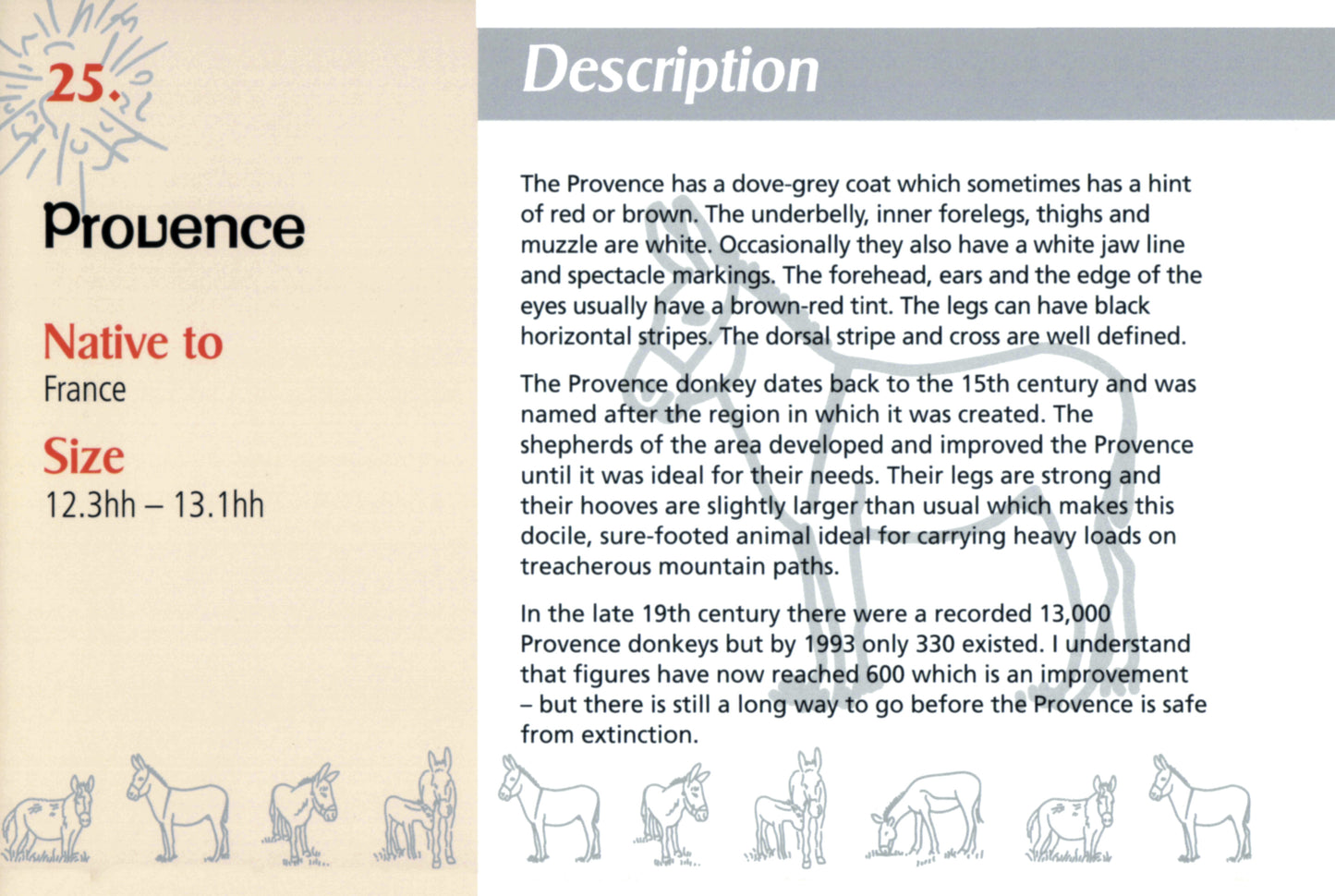 Part ten of the "Know Your" series honours a species which has done so much to help humans over the course of our development, the donkey. Jack Byard's selection of breeds includes some of the most well known as well as some which are under threat. Jack gives fascinating information about each breed's history, appearance and personality as well as a photograph of the animal in all its glory.