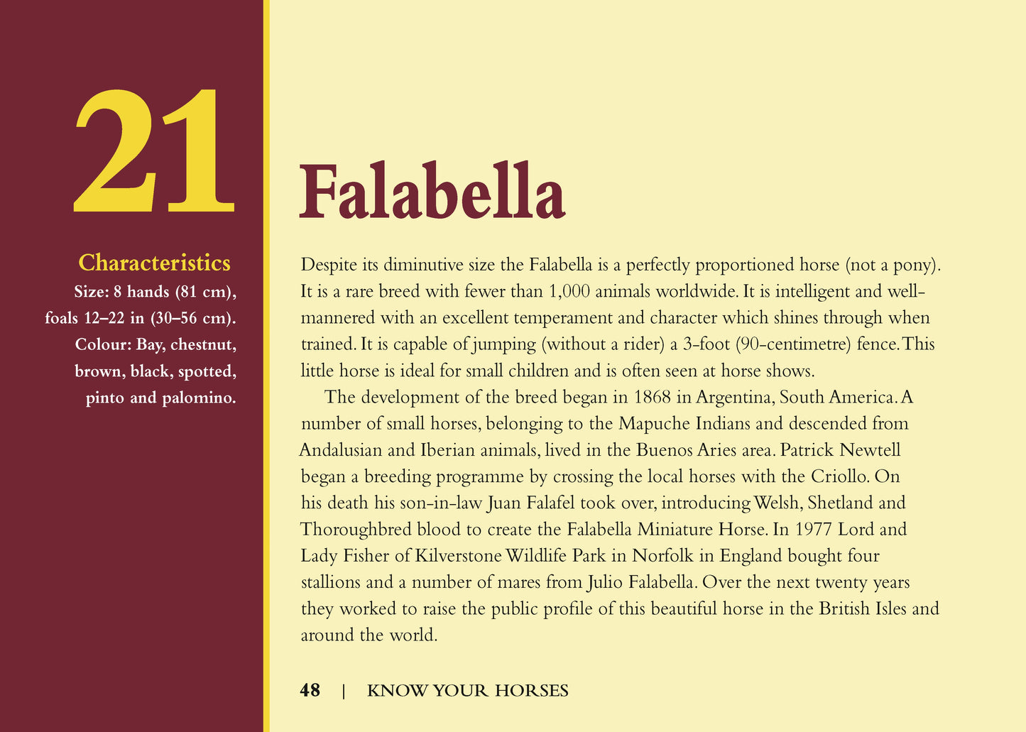 "Know Your Horses" gives a full page photograph of each featured breed and Jack has conducted thorough research to produce an accompanying concise description of the animal's appearance, uses and history. He also includes fascinating snippets about the role of the breed in human history. Jack includes working horses, riding horses and ponies. Many of the breeds are well known and numerous; some are a little more unusual, while a couple teeter on the brink of extinction. Some are native and some are not but keep your eyes peeled around Britain today and you can see all 43 of the breeds featured in this book. This small format paperback is designed for the novice enthusiast of any age and provides perfect overview of this diverse species.