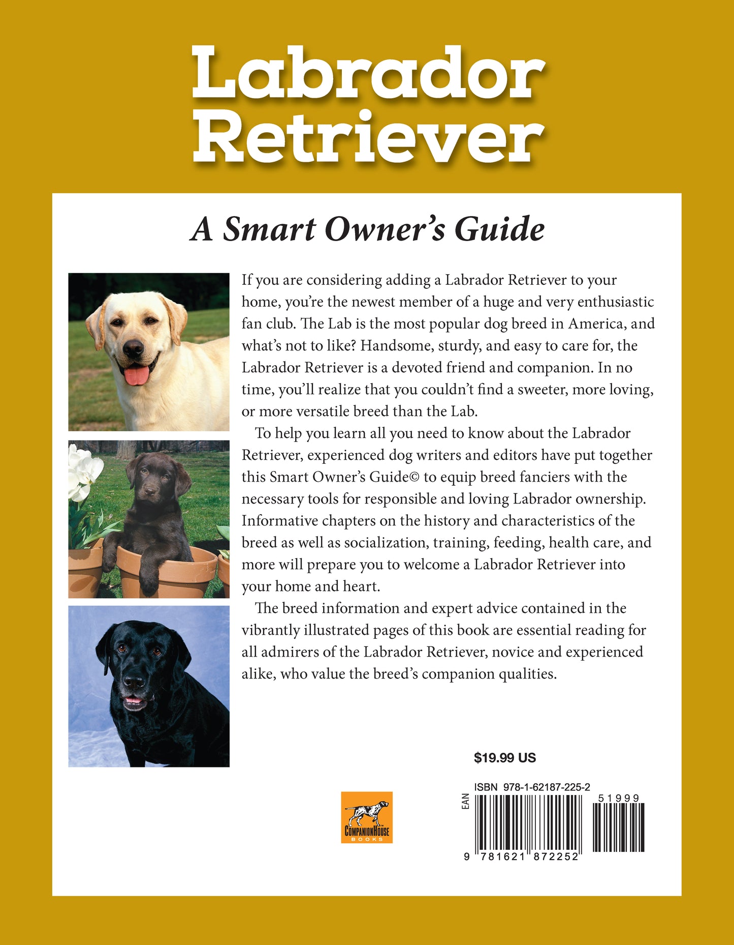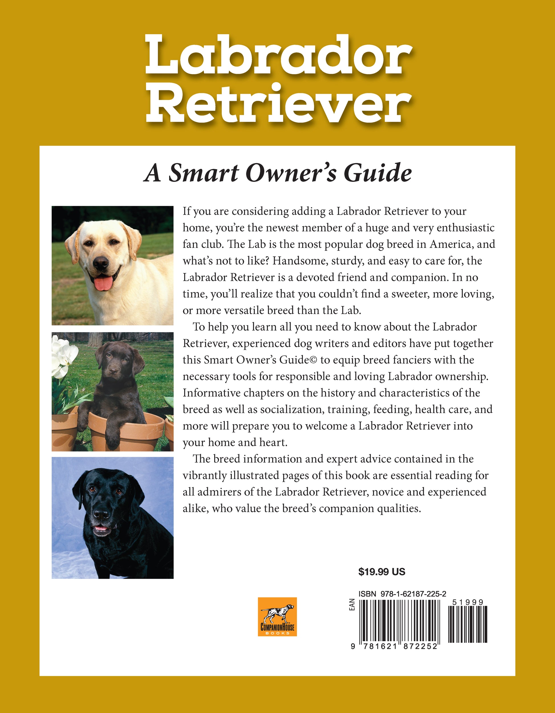 Sweet, versatile, and a devoted friend, the Labrador Retriever's adorable looks, even temperament, and easy-going personality make him an ideal housemate!This Smart Owner's Guide offers the most up-to-date and accurate information every dog owner needs to become a well-informed caregiver for this specific dog breed. Illustrated with photographs of adorable puppies and handsome adults, this comprehensive buteasy-to-read dog manual is designed in a modern, lively manner that readers will find user-friendly. Entertaining tidbits and smart advice fill up colorful sidebars in every chapter. Real-life heroes and rescue stories are retold in full-page features, and recipes, dog training, and care tips are also highlighted in feature pages. The Resources section of the book includes contact information for breed-related organizations and rescues, as well as practical guidance on traveling with dogs, identification, and locating qualified professionals to assist the dog owner, such as pet sitters, trainers, and boarding facilities.