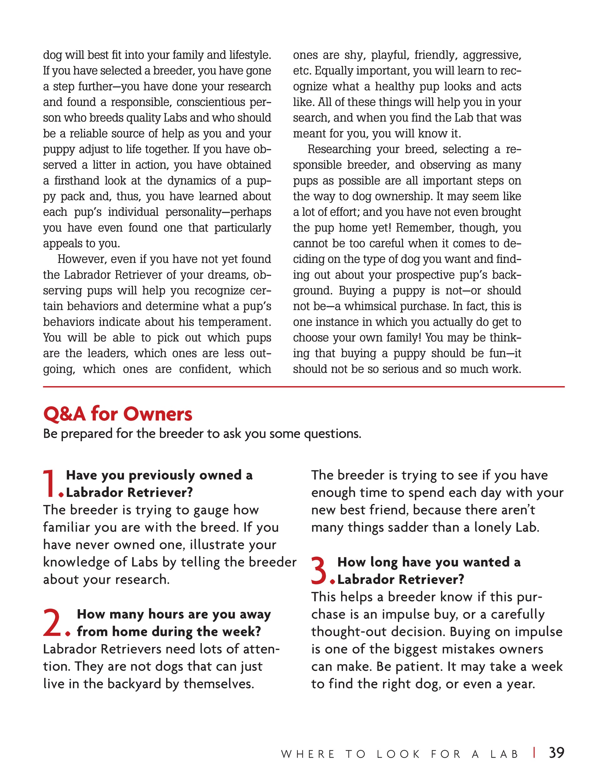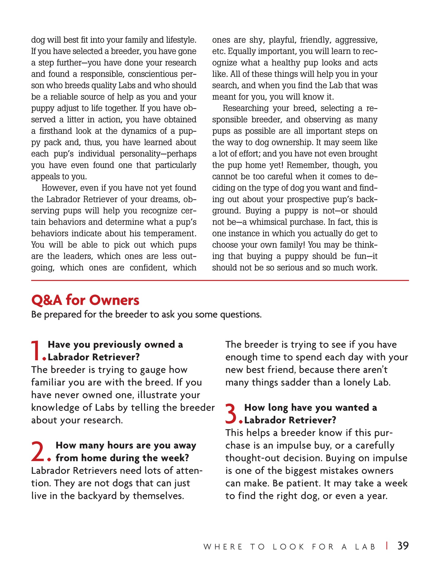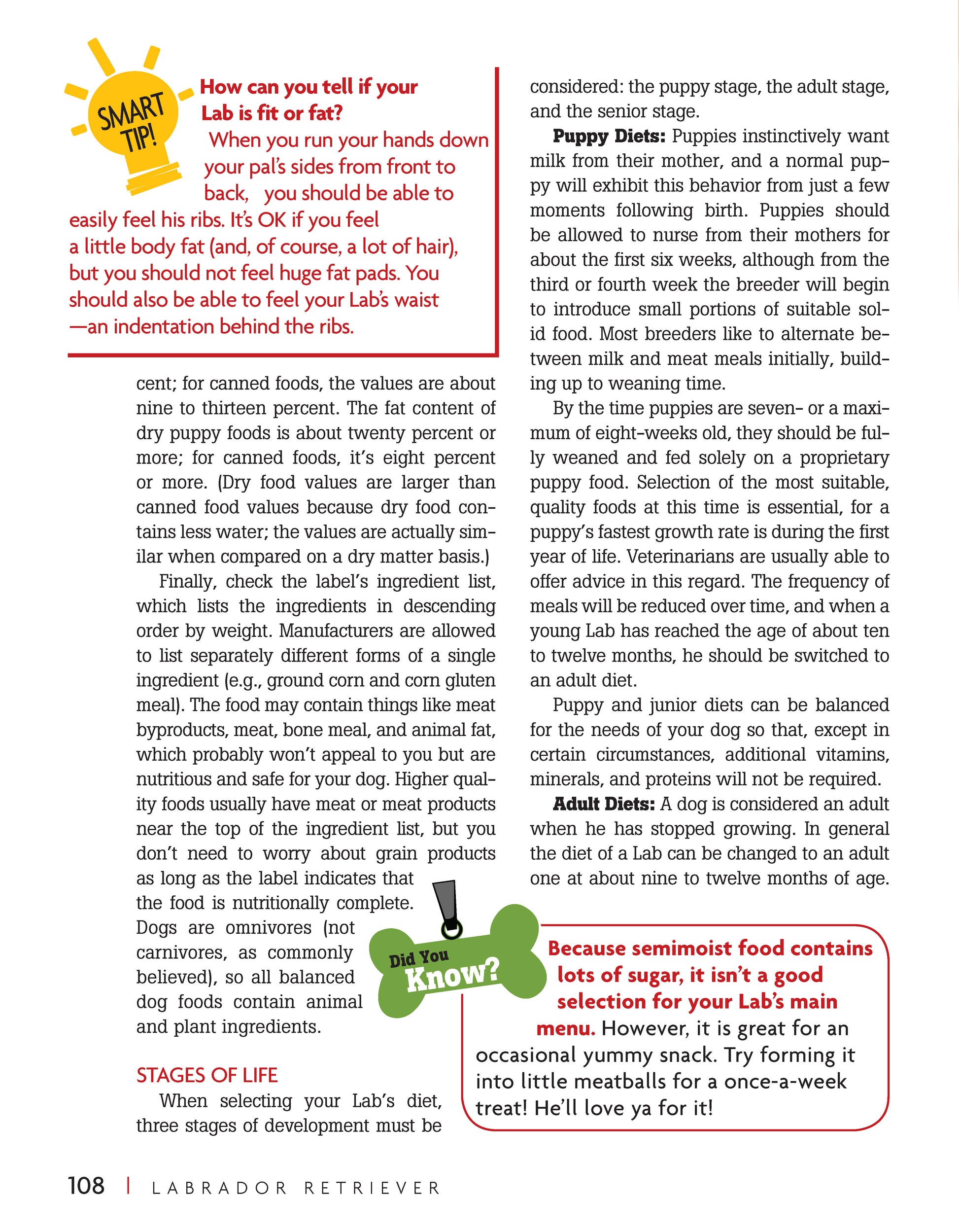 Dedicated to the most popular dog in the world?a sporting dog with no equal and a companion above all else--the Labrador Retriever, this Smart Owner’s Guide, created by the editors at Dog Fancy magazine, offers the most up-to-date and accurate information every dog owner needs to become a well-informed caregiver for his dog. Illustrated with color photographs of adorable puppies and handsome adults, this easy-to-read primer is designed in a modern, lively manner that readers will find user-friendly and entertaining.Each Smart Owner’s Guide offers a description of the breed’s character and physical conformation, historical overview, and its attributes as a companion dog. The reader will find informative chapters on everything he or she needs to know about acquiring, raising, and training this remarkable purebred dog, including: finding a breeder and selecting a healthy, sound puppy; preparing for the puppy’s homecoming, shopping for supplies, and puppy-proofing the home; house-training; veterinary and home health maintenance; feeding and nutrition; and grooming. Obedience training for basic cues (sit, stay, heel, come, etc.) and solving potential problem behaviors (barking, chewing, aggression, jumping up, etc.) are addressed in separate chapters, as are activities to enjoy with the dog, including showing, agility, therapy work, and more.Entertaining tidbits