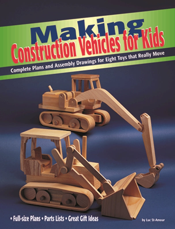 Parents, grandparents and woodworkers with small children in their lives will love these chunky model construction toys. Built to last, these eight wooden toys make the perfect "made with love" gift for children ages five and older. Each construction model features over-sized, exaggerated parts that are easy for little hands to manipulate. And the moveable wheels and buckets will keep imaginative children engaged in hours of creative play. Complete assembly drawings for eachof the eight toys make these projects simple for adults to make. The author also includes tested and proven parts lists and full-size cutting templates. All of the models presented here can be made with common shop tools. The author recommends a scroll saw, a drill press, a belt/disc sander, a one-inch belt sander, a band saw, and a thickness planer.