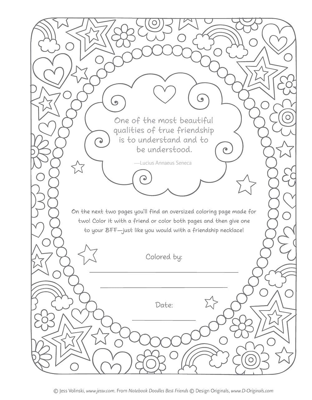 Celebrate your friends! Welcome to the special and heartwarming world of Notebook Doodles Best Friends! This fun and playful coloring book for ‘tweens is filled with 29 friendship-themed designs, fill-in-the-blank activities, and sweet sentiments from talented artist Jess Volinski. With uplifting art activities for young girls, Jess also includes instructions on basic coloring techniques, fully colored examples, and charming quotes to go with every design. Watercolors, colored pencils, markers, crayons, and gel pens will all look stunning on archival-grade, acid-free, 200-year paper. Each one-sided page is perforated, so when it's finished, it can easily be removed to hang up or give as a gift.