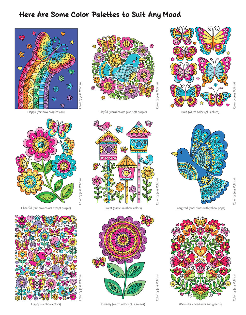 Enter the lovely and wonderful world of Notebook Doodles Birds, Blooms & Butterflies! Frolic through fields of flowers with this fun coloring book for ‘tweens that’s filled with 32 playful designs from talented artist Jess Volinski to color into life. Jess also includes instructions on basic coloring techniques, fully colored examples, and motivational quotes to go with every illustration. Watercolors, colored pencils, markers, crayons, and gel pens will all look stunning on archival-grade, acid-free, 200-year paper. Each one-sided page is perforated, so when it's finished, it can easily be removed to hang up or give as a gift.