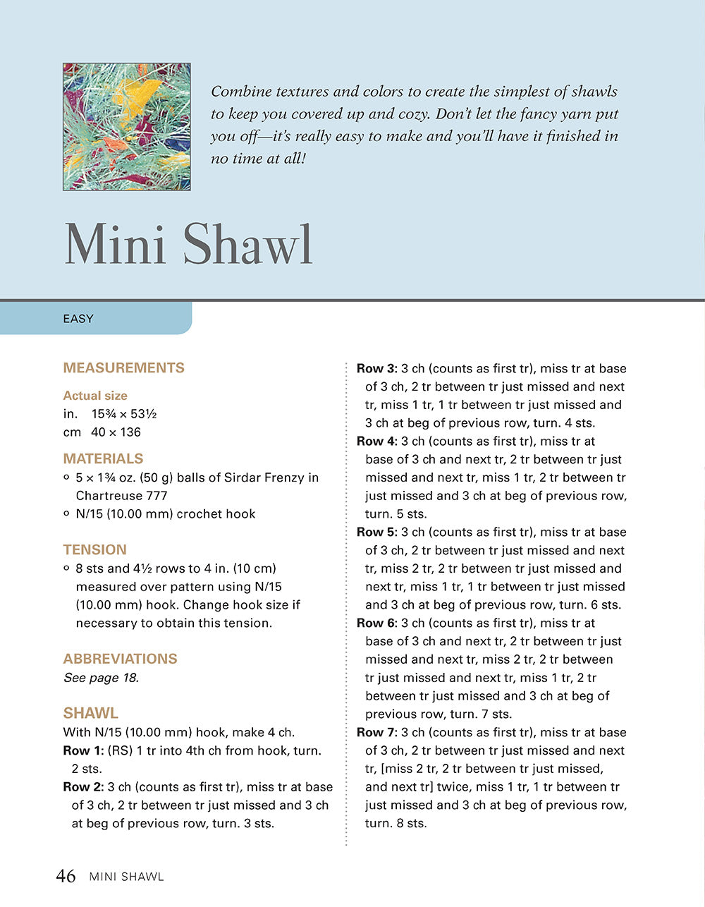 Get noticed at your next party with an incredible crochet creation that you made yourself! Party Crochet offers 24 fun and fabulous designs for party wear, each perfect for that special occasion. Try the camisole top and matching skirt in silver and gold, the fuchsia/pink fur jacket, the strappy evening dress, the sequined bolero or the mini poncho—any of these terrific patterns will make your party style. Crocheted accessories include a corsage, a cuff bracelet and a stunning evening bag. Accompanied by gorgeous color photographs, these irresistible projects are perfect for beginners and veteran crocheters alike. Each design is worked using simple stitches, clearly explained with step-by-step patterns and diagrams. A comprehensive how-to section covers all the basics of crocheting, along with essential advice on yarns, hooks, and techniques.