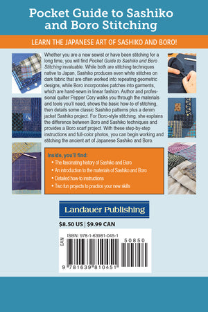The best and most convenient guide to the Japanese embroidery style of sashiko and boro stitching you'll ever own, this handy pocket guide will help you fully understand these two timeless sewing techniques and how to perfectly execute them. While both are stitching techniques native to Japan, sashiko produces even white stiches on dark fabric that are often worked into repeating designs, and boro incorporates patches into garments which are hand-sewn in linear fashion. Featuring helpful overviews on the history of boro and sashiko stitching, also included are detailed sections on tools, marking tips, and a variety of simple designs. With two simple projects that contain easy-to-follow, step-by-step instructions and coordinating photography, you'll fall in love with this unique stitching style!