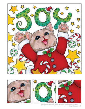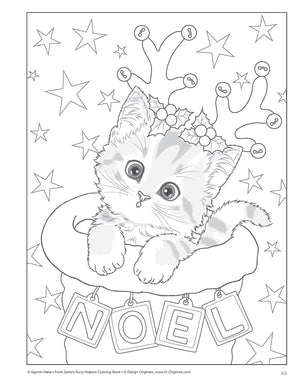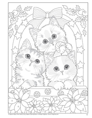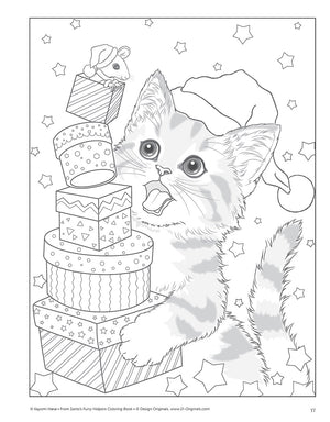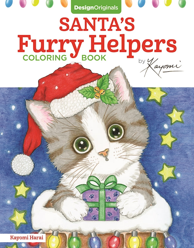 The expressive-eyed furry friends depicted in the artistry of acclaimed illustrator Kayomi Harai have a wonderful way of capturing hearts. Now her delightful felines are even melting Santa’s heart in this adorable Christmas coloring book. Kayomi presents dozens of festive yuletide kitties, ready to color with markers, colored pencils, watercolors, or gel pens. Readers will recognize these same B&W coloring pages from Kayomi's Santa's Kitty Helpers Holiday Coloring Book (ISBN: 9781497203761). In Santa's Furry Helpers Coloring Book she adds to the magic with beautiful full-colored sample pages, plus helpful advice on coloring style, techniques, and backgrounds. Each design is printed on one side only of archival-grade, acid-free, 200-year paper. Each perforated page detaches easily for gifting or display. If you love cats and you love Christmas, get ready for hours of relaxing creativity.