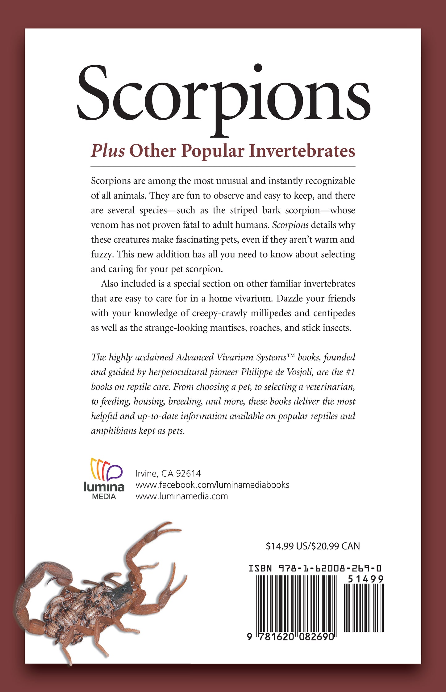 Scorpions is one reptile care book from the highly acclaimed Advanced Vivarium Systems series. The AVS series, founded and guided by herpetocultural pioneer Philippe de Vosjoli, is the #1 series on reptile care. From choosing a pet to selecting a veterinarian to feeding, housing, breeding, and more, these books deliver the most helpful and up-to-date information available on popular reptiles and amphibians kept as pets.