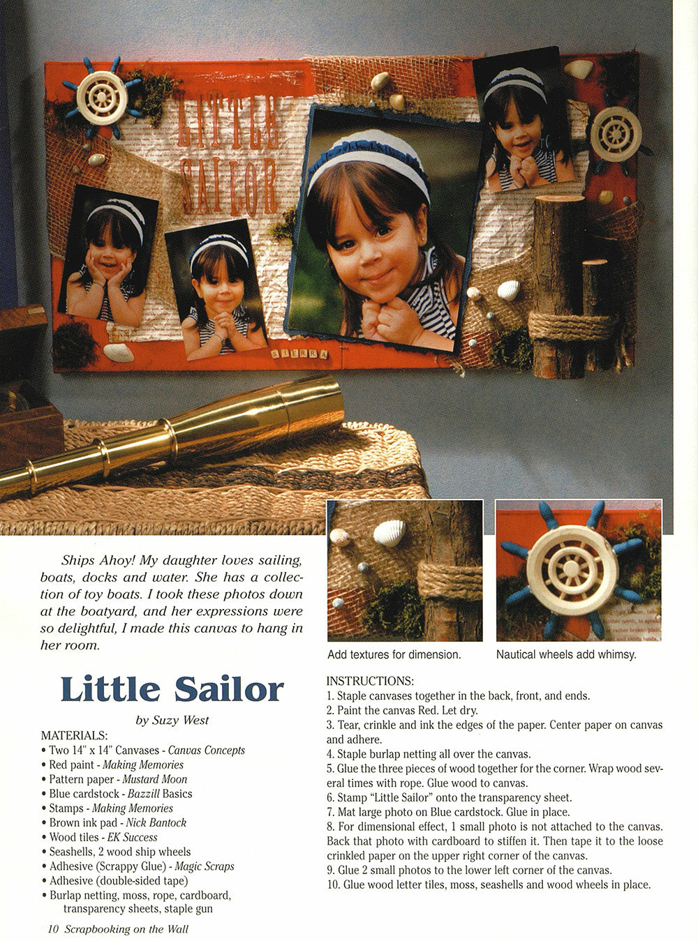 When canvas art marries scrapbooking techniques, the union produces a fresh, new look for wall art. This book is fully loaded with great ideas to enhance your home decor. Whether you are interested in nostalgic heritage photos, or decorating a room for the newest addition to your family, our designers have a project that will inspire you. Whether you use this book to get new ideas, try out a new technique, or explore better ways to express yourself with effective journaling, you will enjoy the experience of making a canvas that is uniquely yours.
