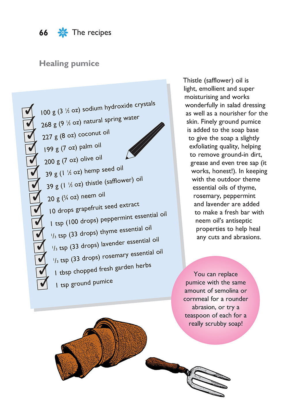 This practical book is full of helpful advice on how to make your own luxurious and beautiful soaps at home, using only the best natural ingredients. Not only are these soaps good for you, they look great and are wonderfully indulgent too! Soap-making entrepreneur Sarah Ade introduces you to all of the simple techniques and basic kitchen equipment you’ll need to create an array of gorgeous soaps. You’ll learn how to choose your ingredients, understand their properties, and put them together to achieve a specific purpose. Dozens of easy-to-follow recipes range from the fun and frivolous to sensible and serious, and the text is packed with ideas for alternative soap making and homemade skin care. This is an essential guide for anyone interested in what they put onto their body as well as what goes inside.