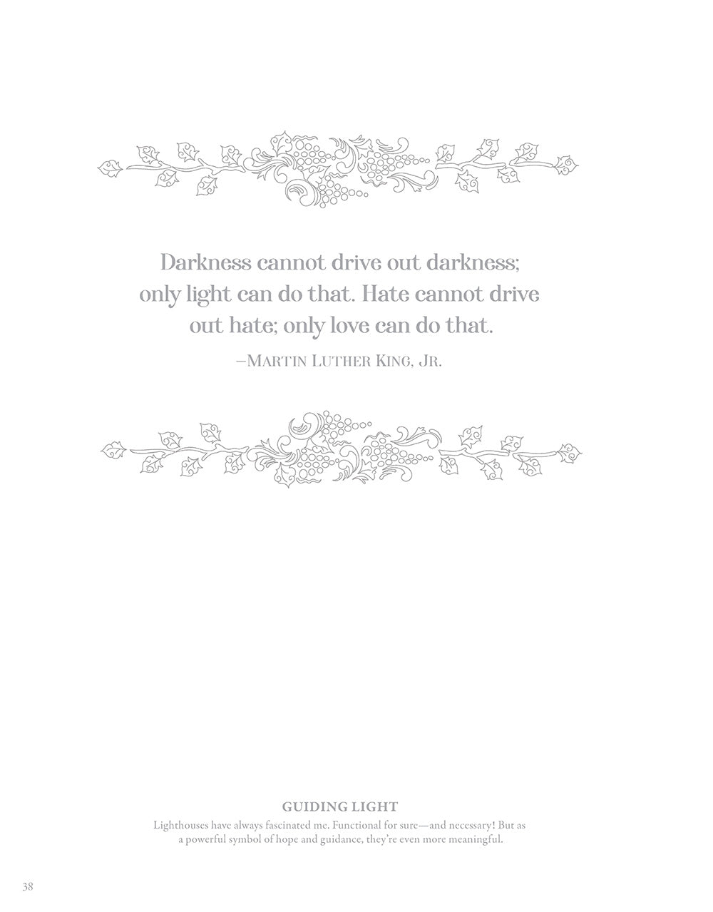 A tranquil adult coloring book featuring Jim Shore’s original artwork based on tradition, family, and love of country. This Simpler Times Coloring Book is filled with more than 30 folk art-inspired designs that include birds, roosters, village scenes, covered bridges, farms, angels, and more. Unique quilt patterns are incorporated into every design as an homage to Jim’s mother. Also contains attractive gatefold covers featuring a stunning gallery of Jim Shore’s original artwork. Each design is printed on a single side of high-quality paper with perforated edges for easy removal and display.