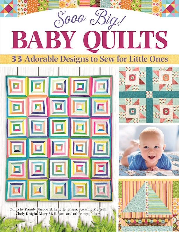 Nothing beats handmade baby blankets! From some of the leading quilt designers in the industry, Sooo Big! Baby Quilts features a compilation of 33 original quilt designs – all for baby! With step-by-step instructions, helpful diagrams and illustrations, quilt patterns, and expert tips, this cuddly and cute project guide provides endless inspiration for both beginner and advanced quilters alike. Practice a variety of techniques and styles to build your quilting skills, from applique and patchwork to string blocks, Irish chains, pineapples, and more. The provided quilt designs also include styles for boys, girls, and even gender-neutral ideas, so there’s truly something for everyone! Including original quilts by Mary Hogan, Suzanne McNeill, Choly Knight, Wendy Sheppard, Lynette Jensen, Jean Ann Wright, and several others, this must-have resource has the perfect design for your little bundle of joy!