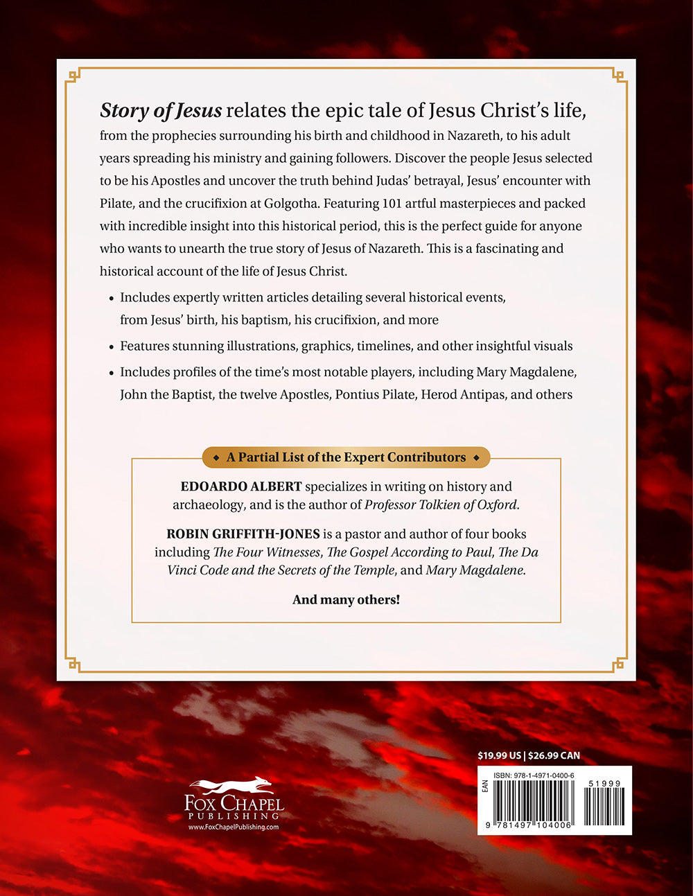 With over 2 billion followers alive today, Jesus Christ may be the most influential person to have ever walked the Earth. Story of Jesus relates the epic tale of Jesus’ life, from the prophecies surrounding his birth and childhood in Nazareth, to his adult years spreading his ministry and gaining followers. Discover the people Jesus selected to be his Apostles, who would witness his most dramatic moments and carry forward his teachings. Uncover the truth behind Judas’ betrayal, Jesus’ encounter with Pilate, and the crucifixion at Golgotha. Packed with incredible imagery and insight into this historical period, this is the perfect guide for anyone who wants to unearth the true story of Jesus of Nazareth.