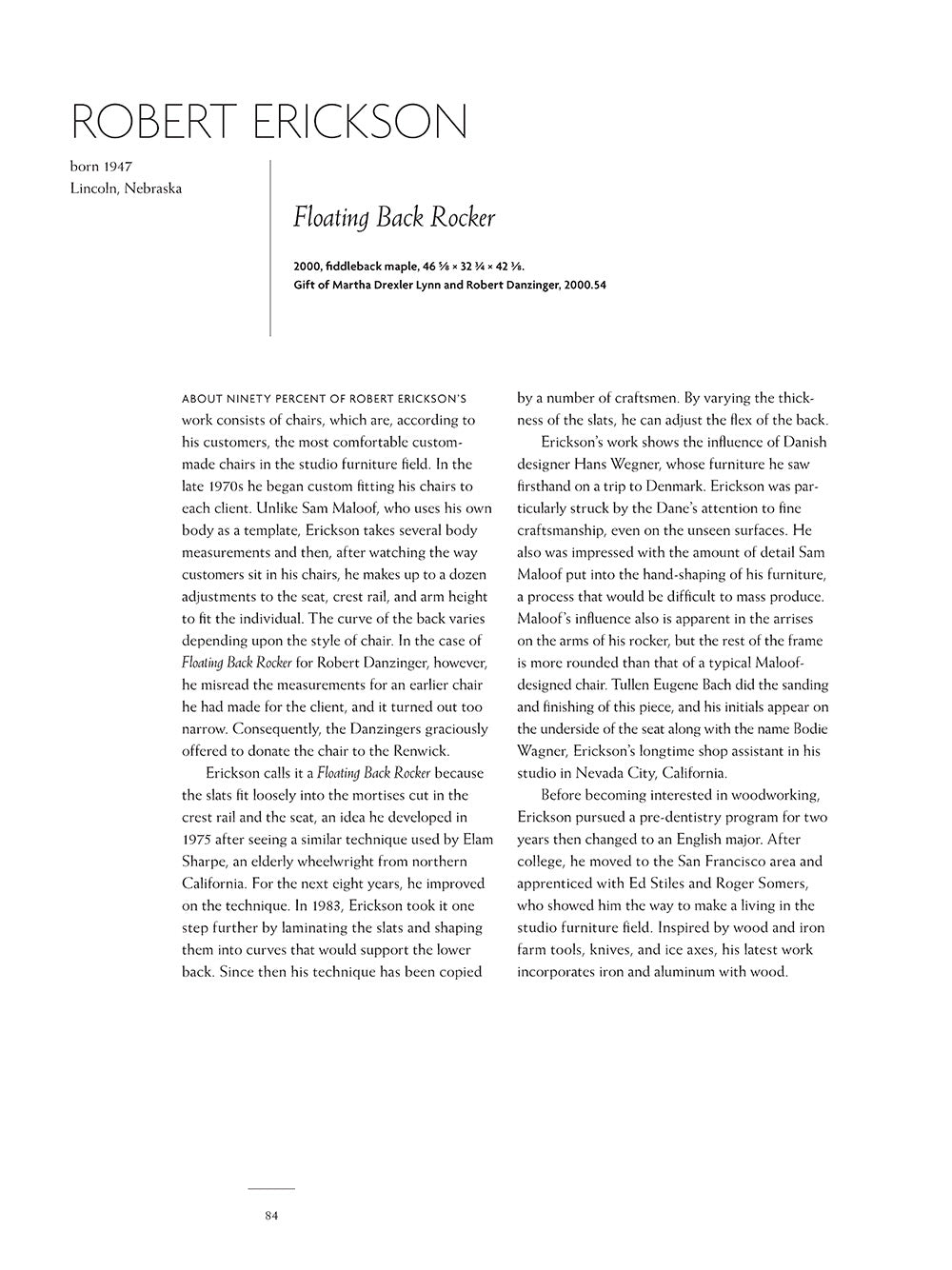 Take a tour of the Renwick Gallery, the craft division of the Smithsonian, and enjoy an in-depth look at the artists and the work of this unparalleled collection of handmade contemporary furniture. This absorbing volume features profiles and interviews of 64 artists and reveals their artistic influences and interpretations along with 112 stunning photos of iconic work.