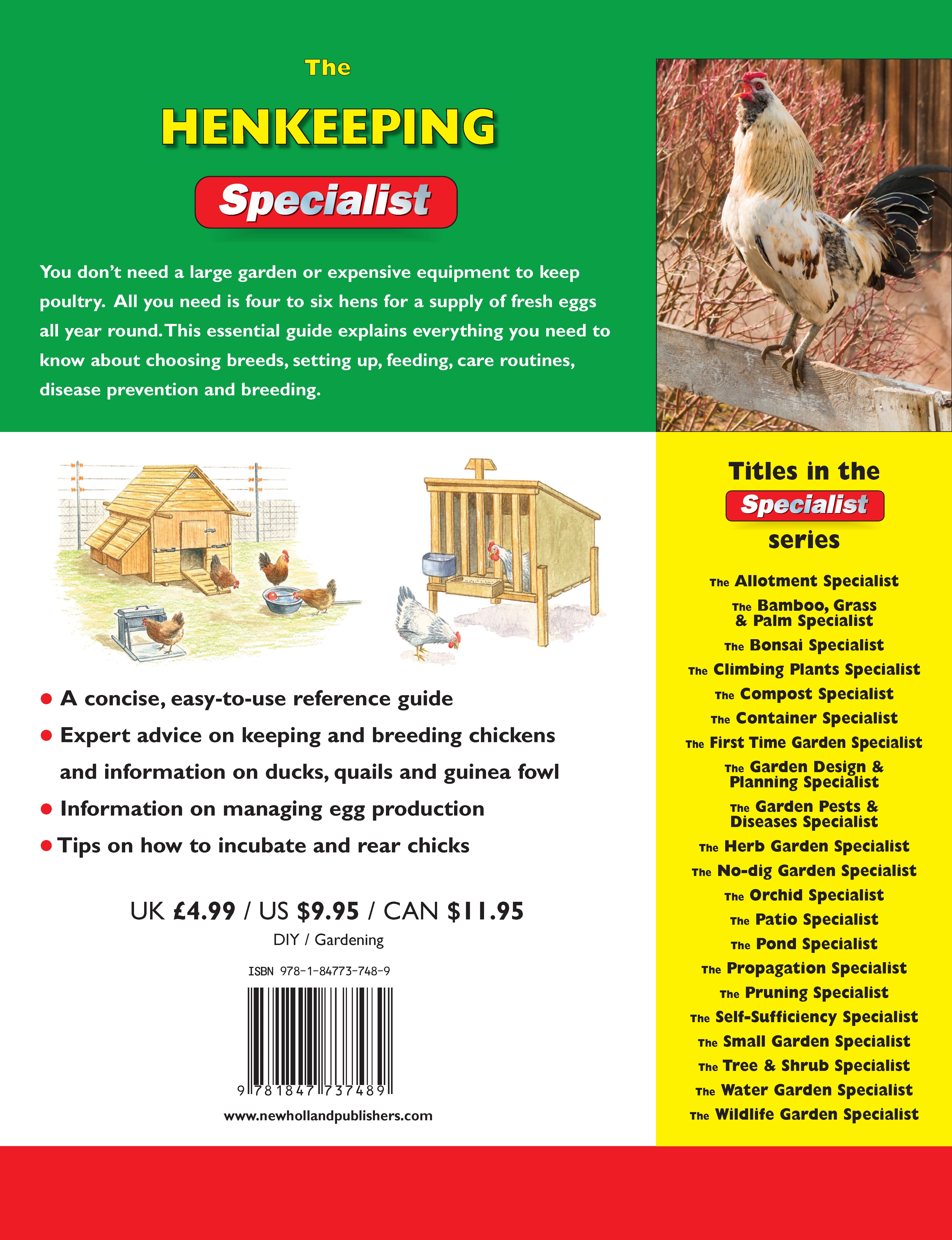 The idea of self-sufficient living has never been more prominent and as a result, henkeeping is becoming increasingly popular. You don't need a large garden, expensive equipment or even a great deal of time and by keeping chickens you can really benefit from the produce - just a couple of hens is all that is needed to keep a family well stocked in fresh eggs all year round. This essential guide provides all the key information needed for keeping your own poultry, from setting up and choosing the right site, housing, feeding, daily care routines, disease prevention and breeding. There is a comprehensive A-Z section on the different chicken and bantam breeds, as well as advice on choosing the right breed for you. The guide is also packed with plenty of practical advice on managing egg production, incubating and rearing and specific nutritional requirements. It is ideal for newcomers interested in learning all about the basics of henkeeping, as well as for those seeking a more self-sufficient, environmentally-friendly lifestyle. It urbanites wishing to embrace aspects of country living.