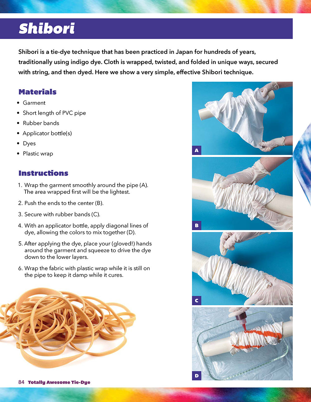 It’s fun and easy to dye and wear your own colorful clothing! Tie-dye is a wonderful way to turn simple fabrics and ready-made garments into dramatic fashion statements. This book teaches all of the most popular tie-dye techniques, including ice dyeing, crumple dyeing, and shibori. Author Suzanne McNeill shows beginners how to create a wide variety of designs and patterns, including stripes, spirals, swirls, speckles, circles, and sunbursts. All you need to get started are inexpensive materials like fabric, string, rubber bands, a bucket and kettle, and dye. Totally Awesome Tie-Dye offers an array of stylish step-by-step projects that go way beyond t-shirts to include socks, scarves, mittens, sneakers, home décor, and more.