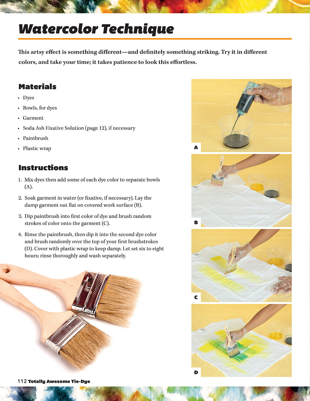 This is a great tie dye resource. Each design includes a material list and instructions that are easy to follow, along with illustrations that are magnificent.