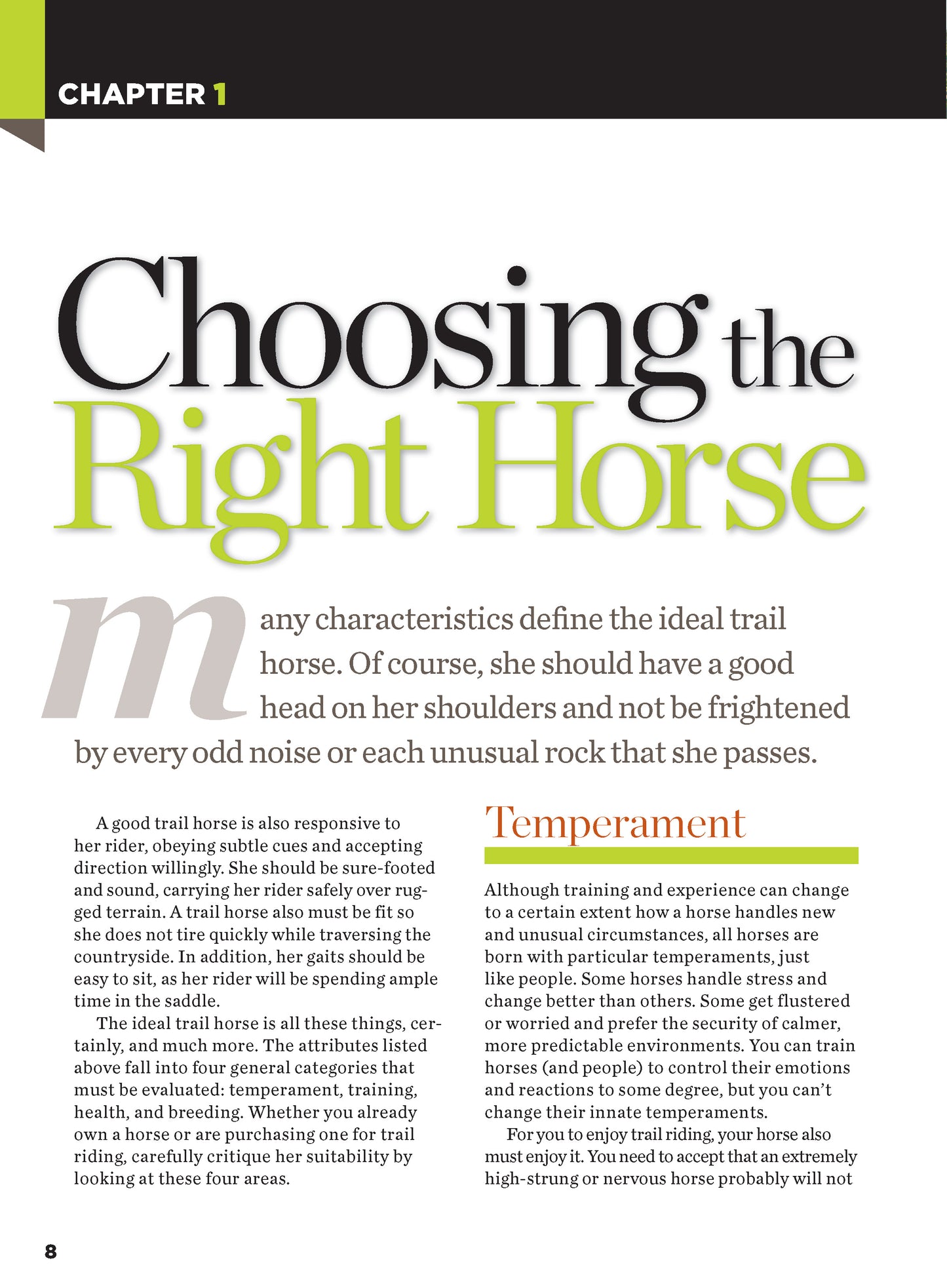 Recently updated and extended, Trail Riding joins the experience and enthusiasm of equestrian Micaela Myers with the wisdom of Horse Illustrated to bring this definitive guide to beginning trail riders. The book covers the fundamentals of America’s #1 equestrian pasttime?from picking out the right gear and training your horse for the trail to planning your jaunt and learning proper trail manners. Complete with step-by-step instructions, countless tips, full-color photos, and an easy-to-use glossary, this guide takes the guesswork out of trail riding.