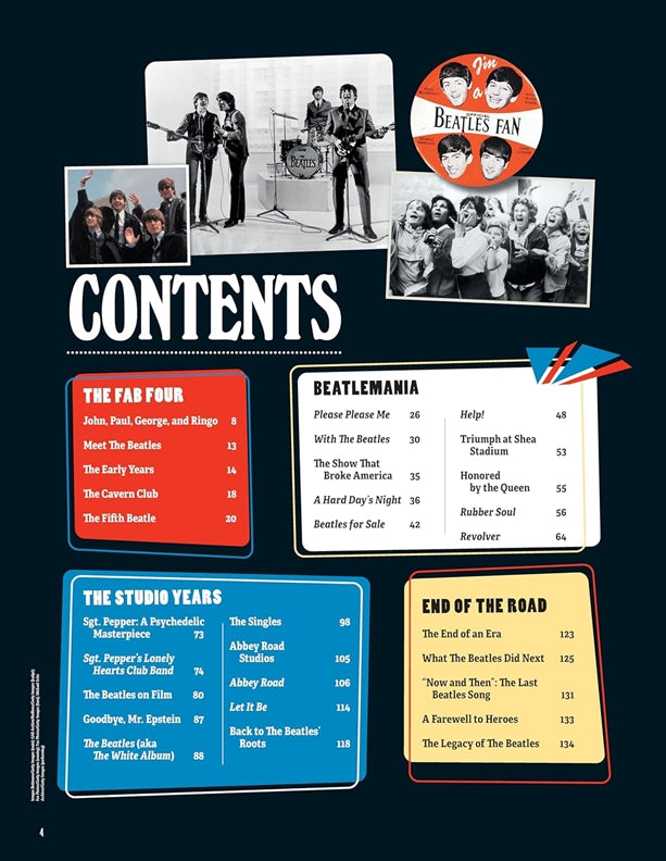Find out all you need to know about how John, Paul, George, and Ringo became the most influential band of all time. Ultimate Beatles Collection charts the Fab Four's musical evolution through the sixties. Includes a fascinating biography of each member of the band, an introduction to the members' early years as school kids with a love of American Rock and Roll, the wide variety of members of The Beatles before settling on the Fab Four, the "Fifth Beatle," Beatlemania in the US, their films--HELP, A Hard Day's Night, Magical Mystery Tour, and Yellow Submarine--The Beatles' White Album, the band's split and their lives after The Beatles, including the murder of John Lennon and the untimely death of George Harrison. Also features a brief description and explanation for each song on the track for albums Please Please Me, A Hard Day's Night, Beatles for Sale, Help!, Revolver, and their alter-egos Sgt Pepper's Lonely Hearts Club Band, and more! Enjoy the immeasurable legacy of the Beatles as it lives on in their music and books.