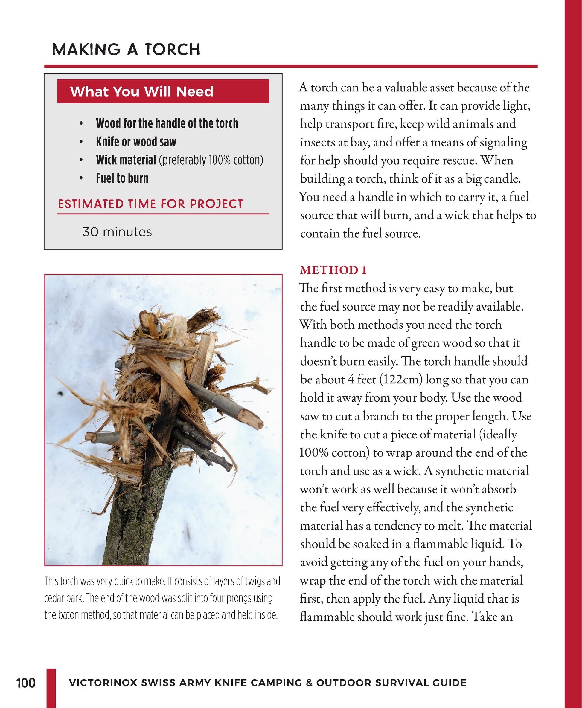 Sharpen your survival skills and learn why you should keep a Swiss Army Knife with you at all times, whether you are exploring wild jungles, tall peaks, or city streets. As a handy “everyday carry” for life’s challenges, the versatile Swiss Army Knife can’t be beat. Victorinox Swiss Army® Knife Camping & Outdoor Survival Guide shows how to use your iconic red multi-tool to handle 101 different emergency situations. From starting a fire and making a shelter to catching a fish, building a stove, or applying a splint, discover why the SAK is a must-have for every survival kit. Author Bryan Lynch includes basic advice on knife care, and reviews the many models and features currently available from Victorinox AG, makers of the Original Swiss Army Knife.